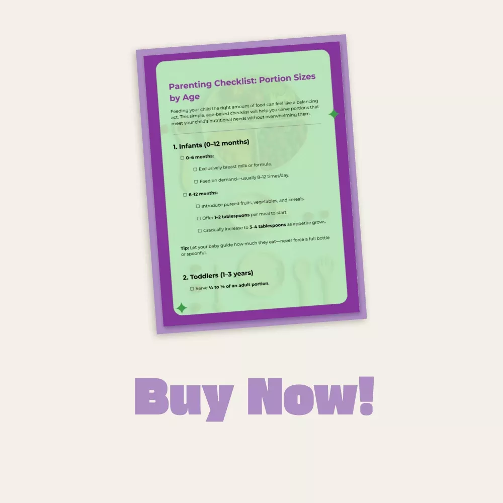Make mealtime stress-free with the Parenting Checklist: Portion Sizes by Age—a practical, printable digital download that helps parents confidently serve the right portions for every stage of childhood. From newborns to teenagers, this guide takes the guesswork out of how much to feed your child. Designed for busy parents who want healthy, balanced eating habits at home, this easy-to-follow checklist is the perfect companion for meal prep, lunch packing, and family nutrition planning.