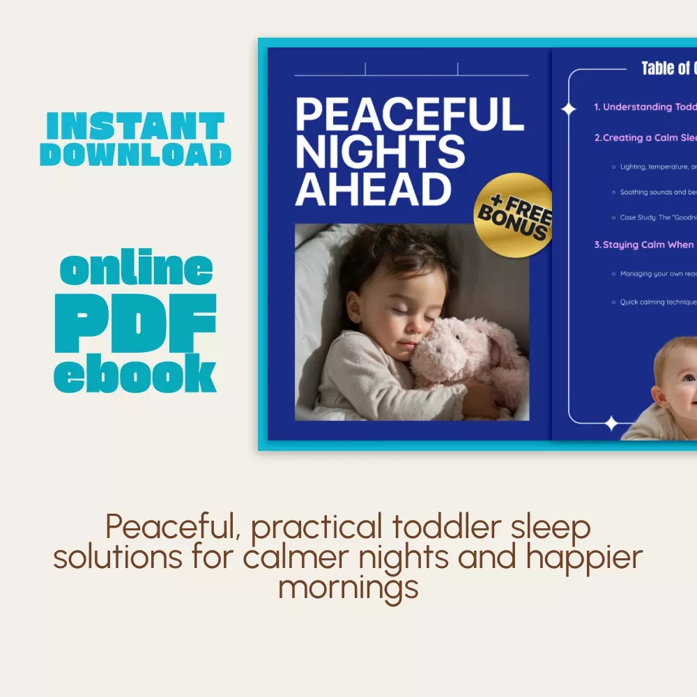 Peaceful Nights Ahead | Toddler Sleep Guide for Calm Bedtimes, Gentle Routines & AI Parenting Support | Digital Download eBook for Parents