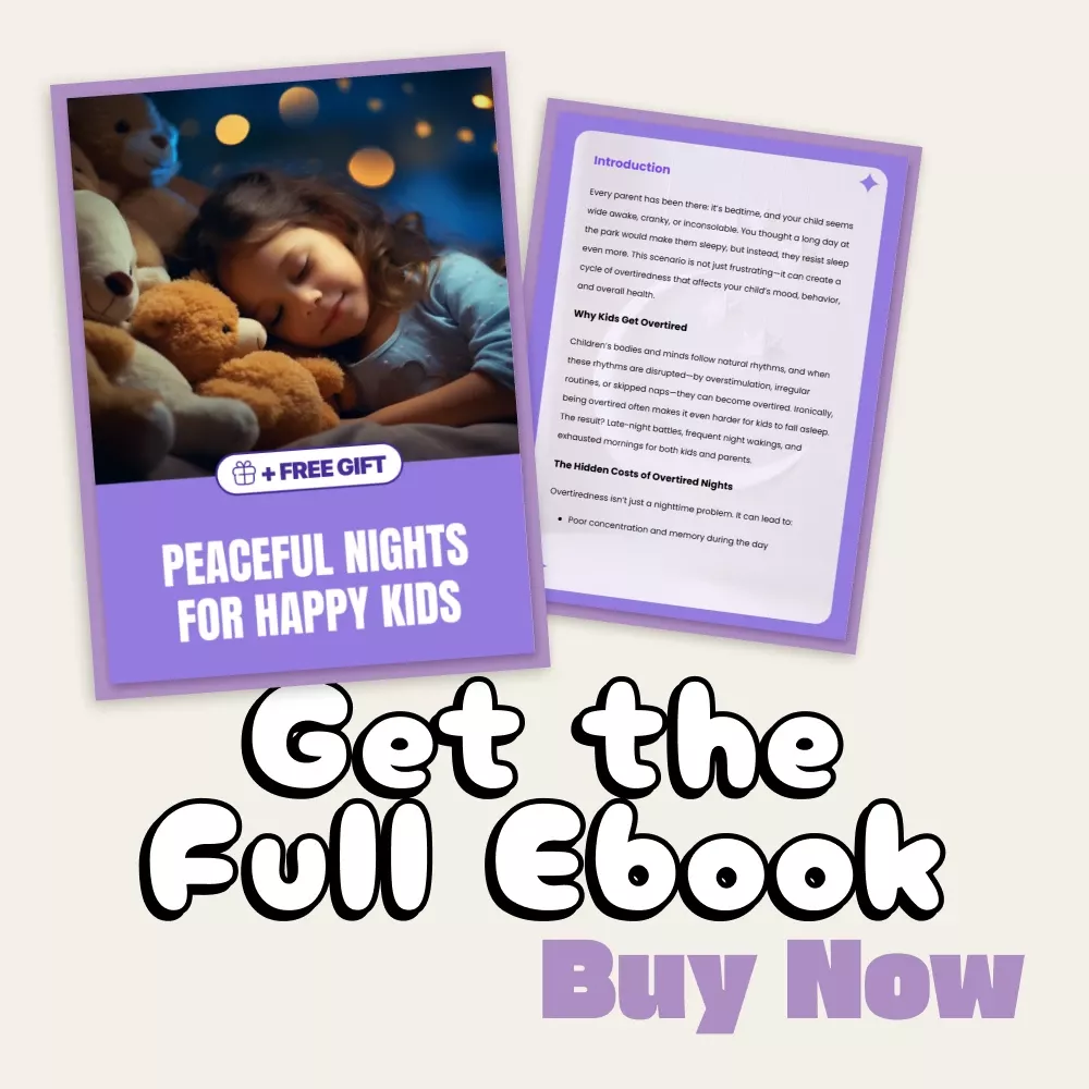 Start your journey to calmer evenings today. Download Peaceful Nights for Happy Kids and enjoy proven tips to avoid overtired kids at night. A peaceful bedtime starts with one click—your child’s best sleep ever is waiting.