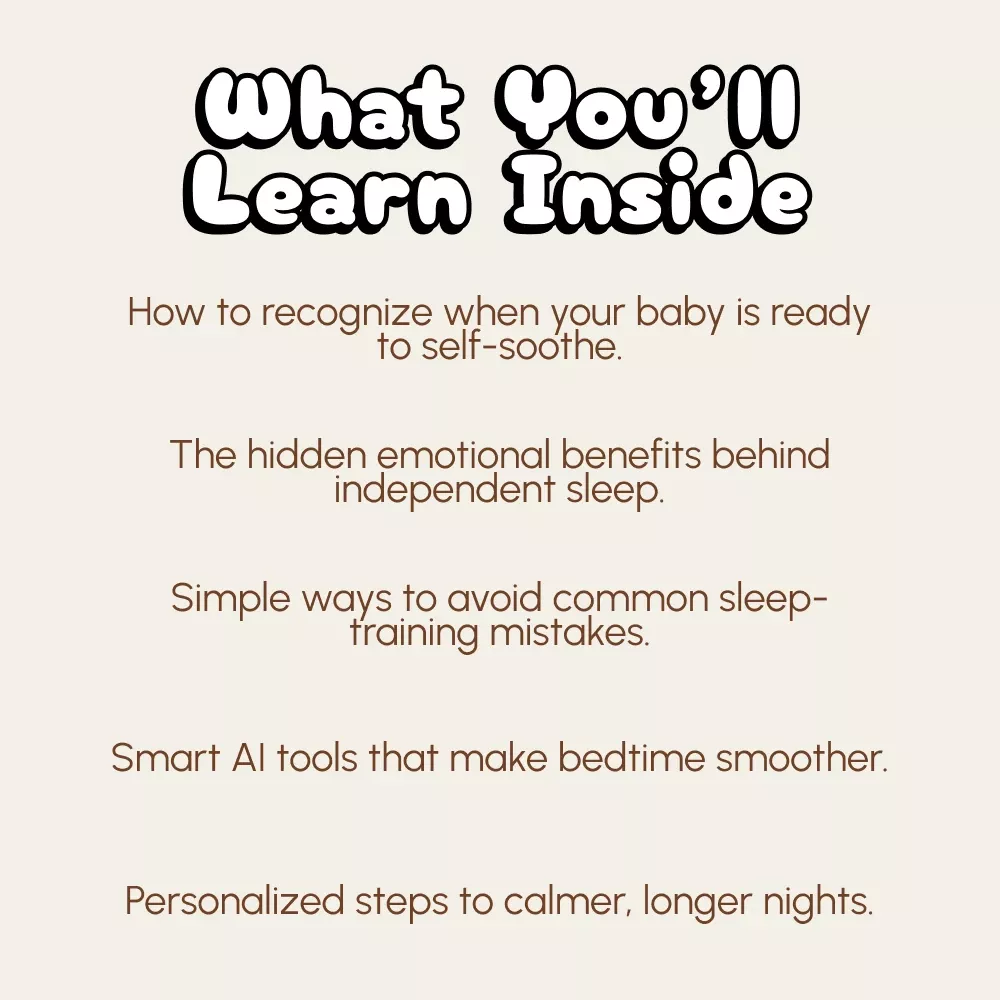 - Why Self-Soothing Matters 💫 — Emotional and physical benefits, plus a real-life case study: Mia’s first full night of sleep.