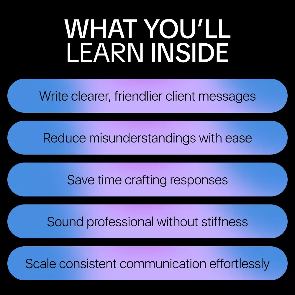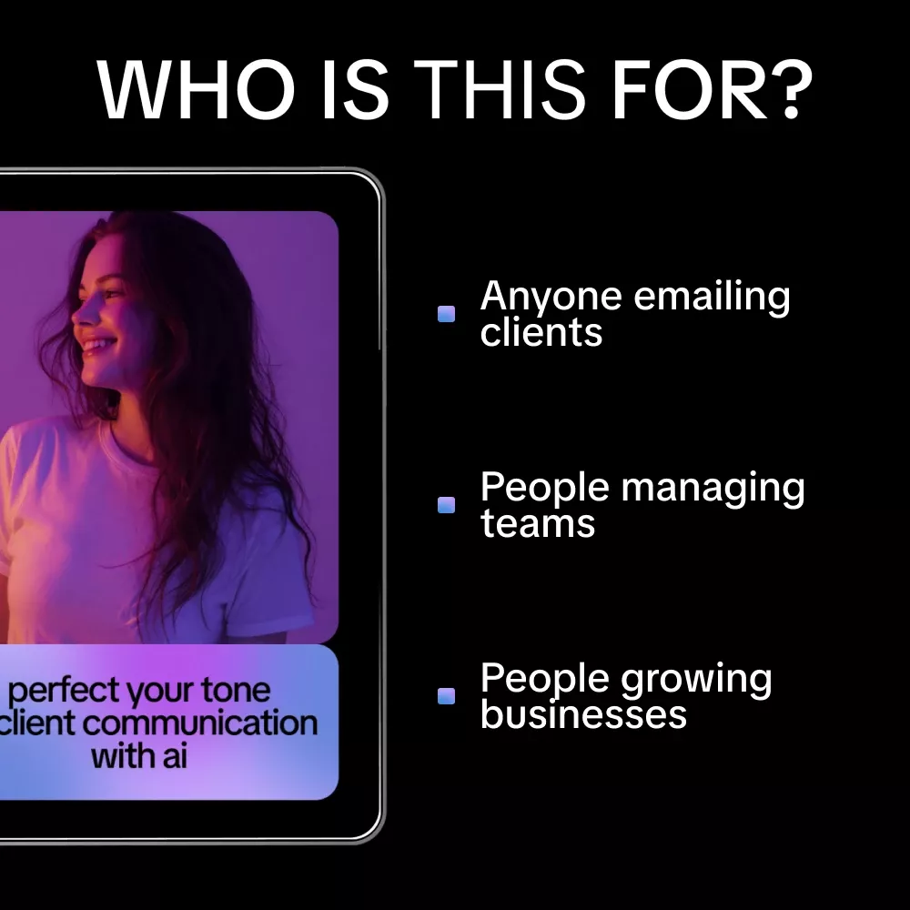This guide is perfect for freelancers, business owners, virtual assistants, coaches, managers, and anyone who communicates with clients or teams online. Unlike generic AI or communication resources, this guide focuses specifically on tone—breaking it down in a human, practical way with prompts, templates, and real scenarios you’ll actually encounter.