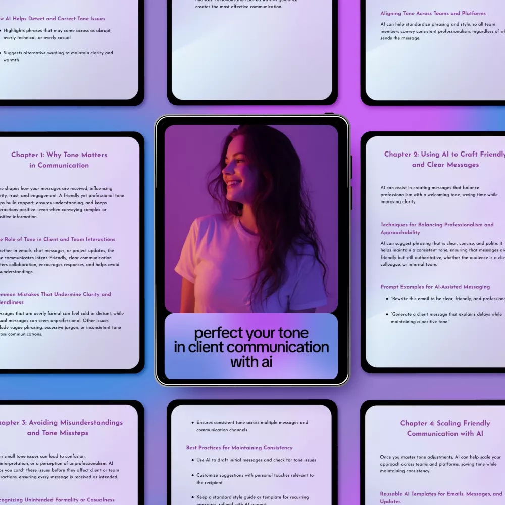 Struggling to sound professional without coming across as cold, or friendly without sounding unpolished? Perfect Your Tone in Client Communication with AI is a practical, easy-to-follow digital guide designed to help you master the art of clear, approachable communication using AI. Whether you write emails, client messages, proposals, or team updates, this guide shows you exactly how to use ai to keep tone friendly and clear—without overthinking every sentence.