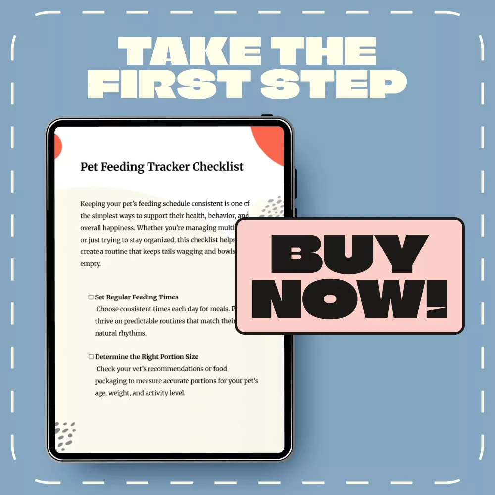 Download your Pet Feeding Tracker Checklist instantly and take the guesswork out of feeding time. Keep your pet’s routine on point — because a well-fed pet is a happy pet. Click “Add to Cart” now to get started!