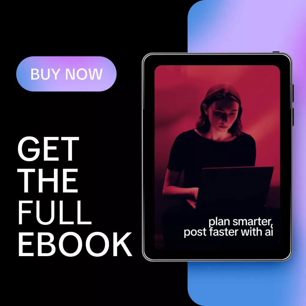 If content planning feels overwhelming, scattered, or constantly behind schedule, this eBook was created for you. Plan Smarter, Post Faster With AI is a clear, practical guide that shows you how to use an ai content calendar generator to turn ideas, goals, and data into a realistic posting plan that actually gets used. No tech jargon. No hype. Just a smart system that helps you plan weeks of content in minutes while keeping your brand voice human and intentional.