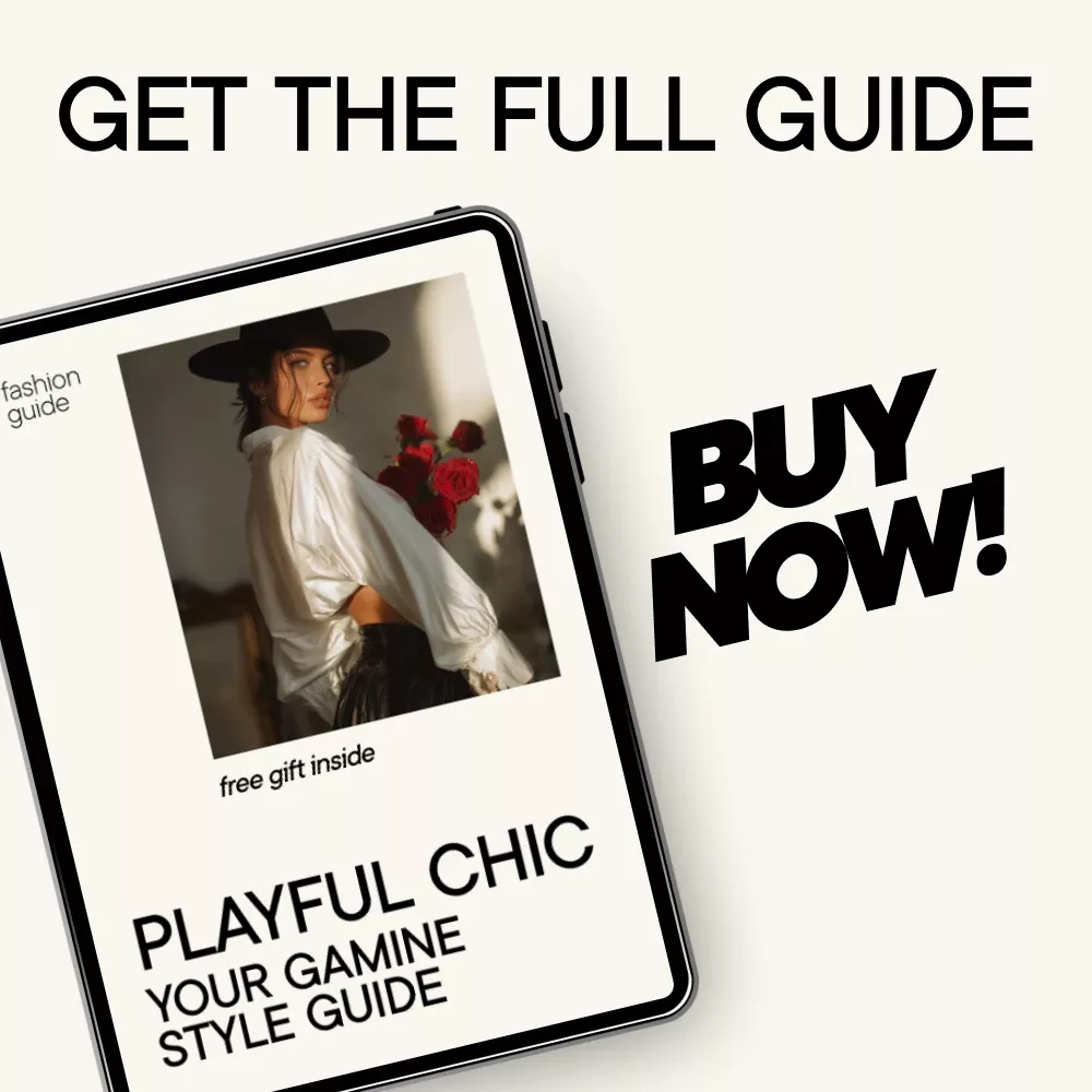 Don’t wait to transform your wardrobe and express your true self with Gamine-inspired looks! Playful Chic: Your Gamine Style Guide is available now as a downloadable digital product. Start building your perfect Gamine wardrobe today and embrace the effortless, chic, and playful fashion that suits you best.