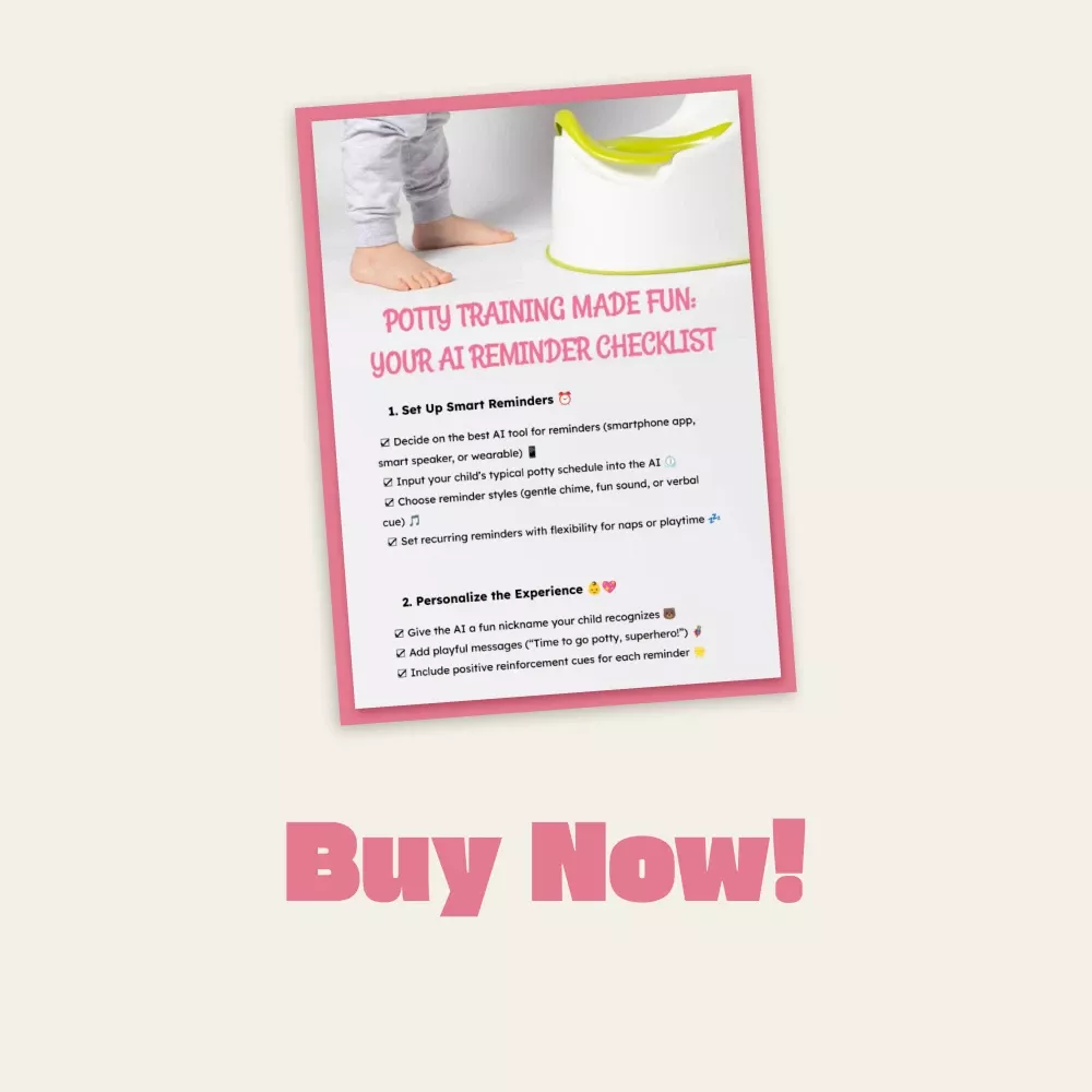 Transform your child’s potty training experience with Potty Training Made Fun: Your AI Reminder Checklist — a creative, easy-to-follow digital guide that combines technology, play, and positive reinforcement. Designed for modern parents, this digital download turns routine potty training into an engaging, stress-free adventure using smart AI reminders your child will actually love.