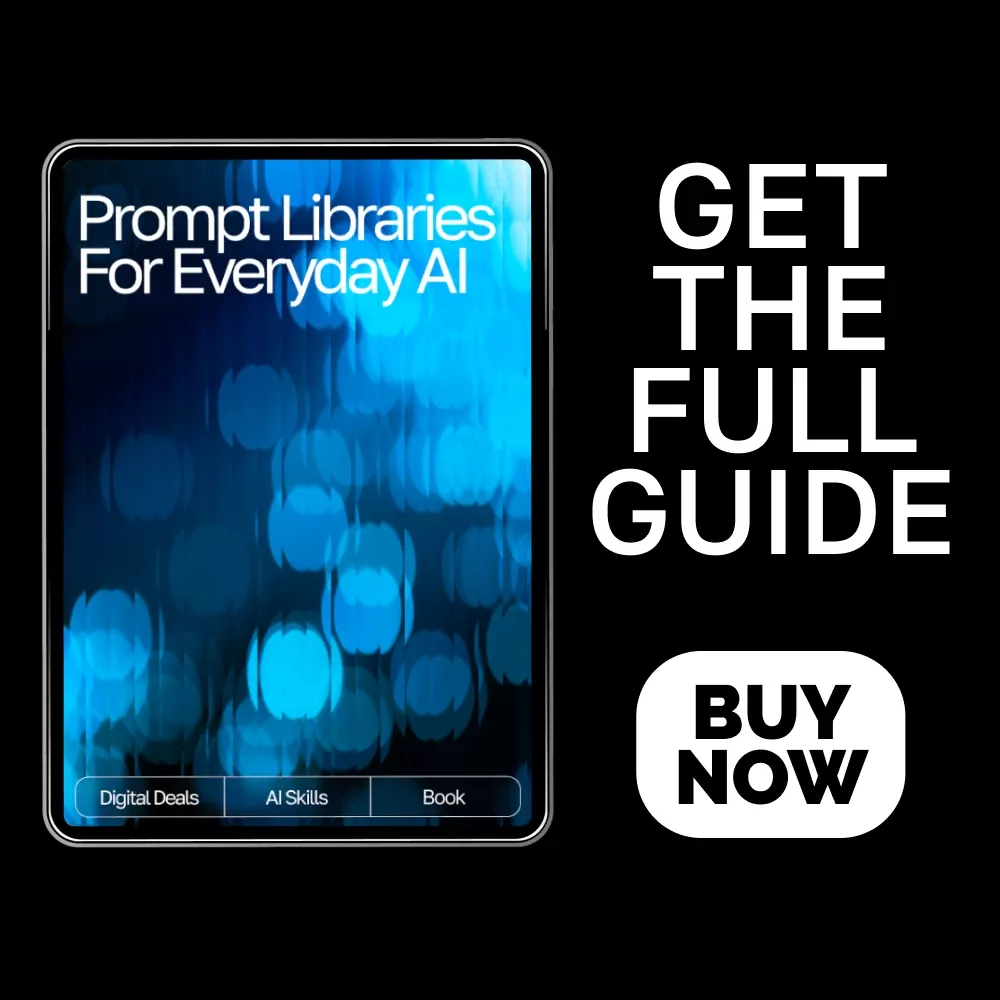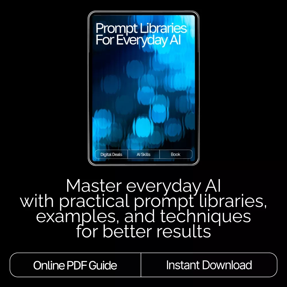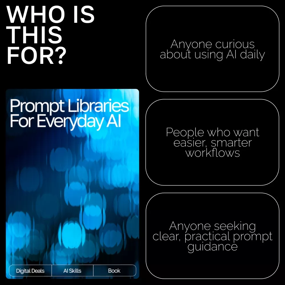 Download your copy of Prompt Libraries for Everyday AI today and start creating smarter, clearer, and more powerful prompts—one page at a time. Your AI journey starts here!