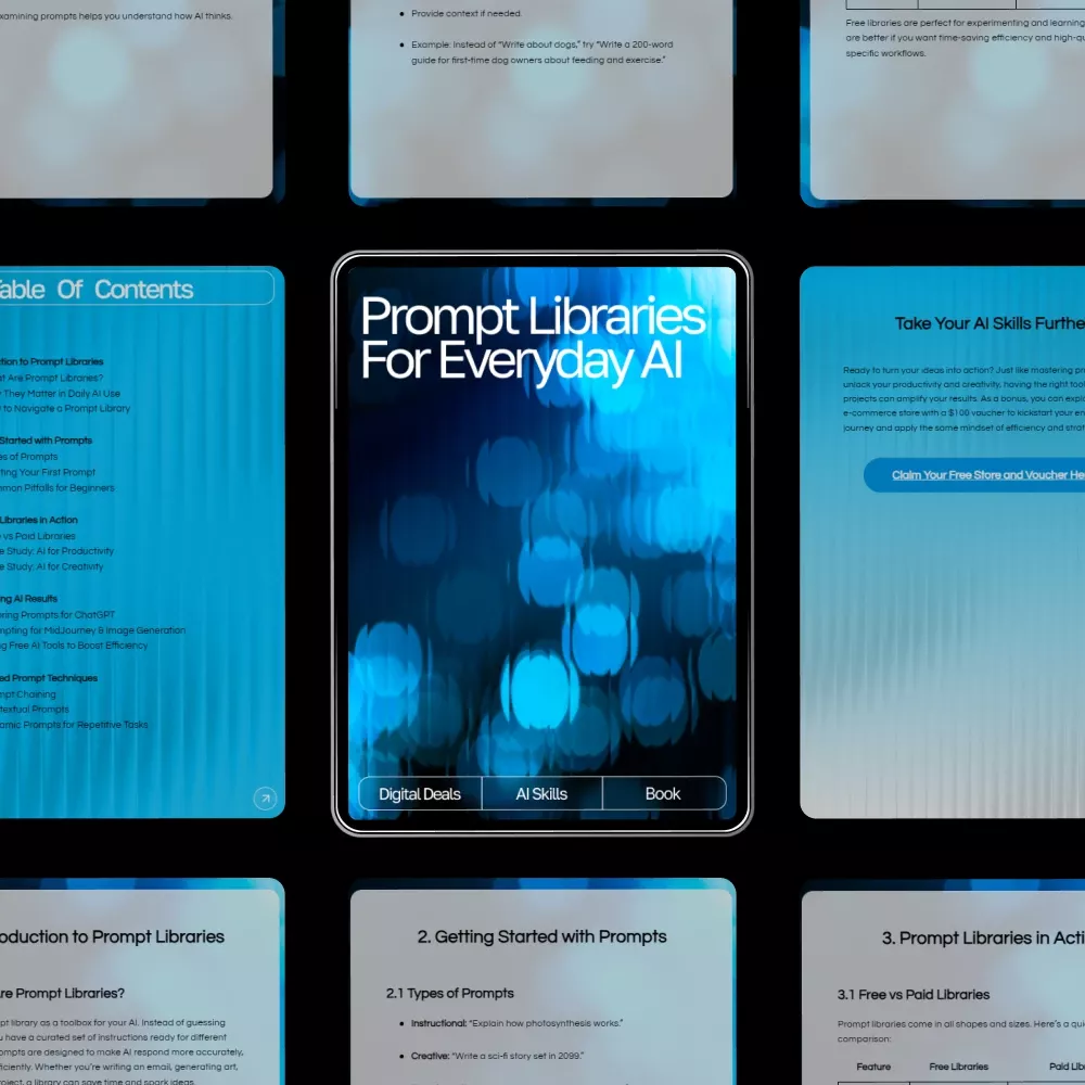 Unlock the full potential of AI in your daily life with Prompt Libraries for Everyday AI, an easy-to-follow, value-packed eBook designed to help you create better prompts, boost productivity, and streamline creative workflows. Whether you’re brand-new to AI or already experimenting with tools like ChatGPT or MidJourney, this guide walks you through the world of prompt libraries in a simple, practical, and inspiring way. Perfect for anyone who wants to work smarter—not harder—this digital resource turns complex prompting concepts into clear, everyday strategies you can actually use.