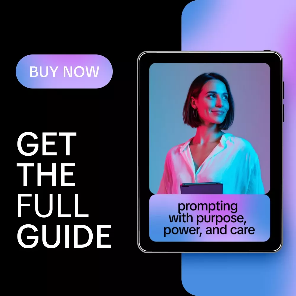 Don’t leave your AI interactions to chance. Download Prompting With Purpose, Power, and Care now and start writing prompts that are purposeful, powerful, and ethically sound. Transform your AI use into a practice of responsibility and care today.
