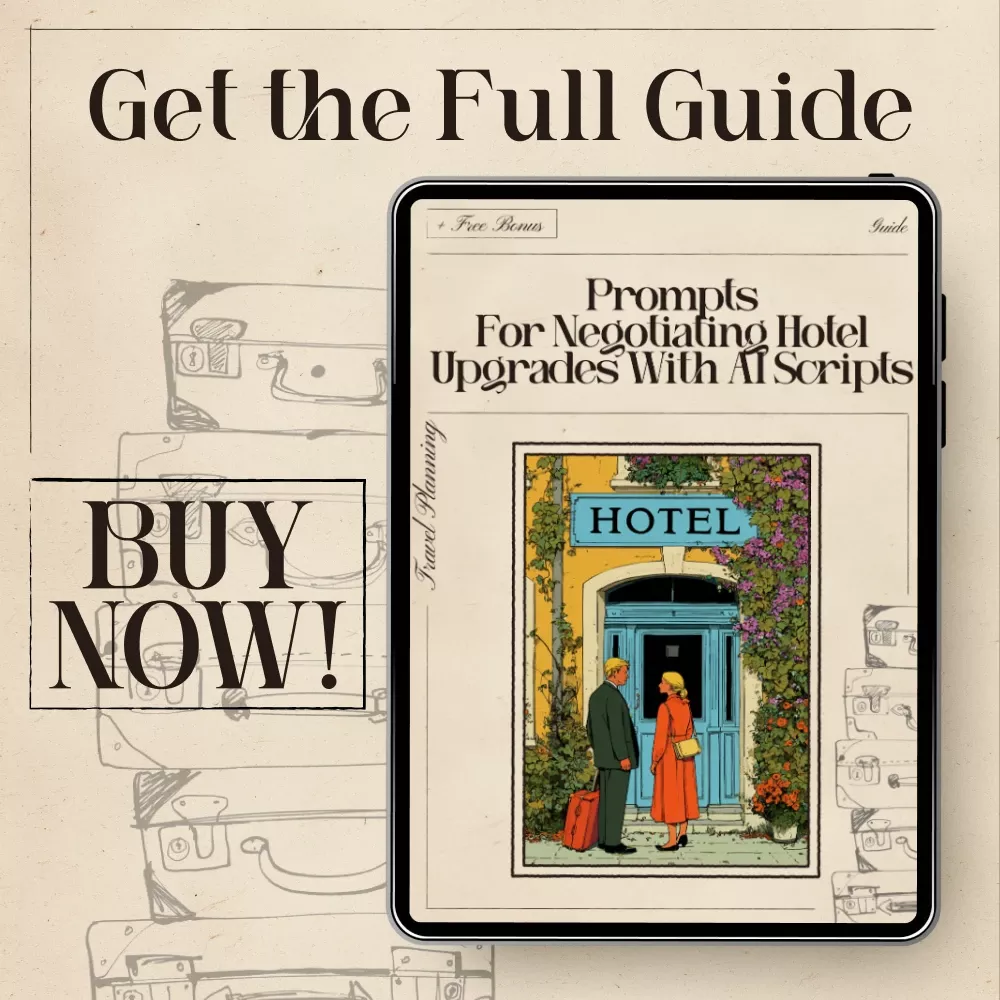 Prompts for Negotiating Hotel Upgrades With AI Scripts | Travel Negotiation Guide for Easy Room Upgrades | prompts for negotiating hotel upgrades with ai scripts | Digital Download for Travelers, Influencers & Frequent Flyers