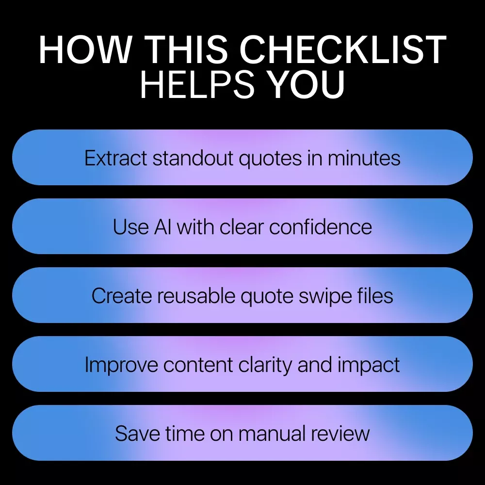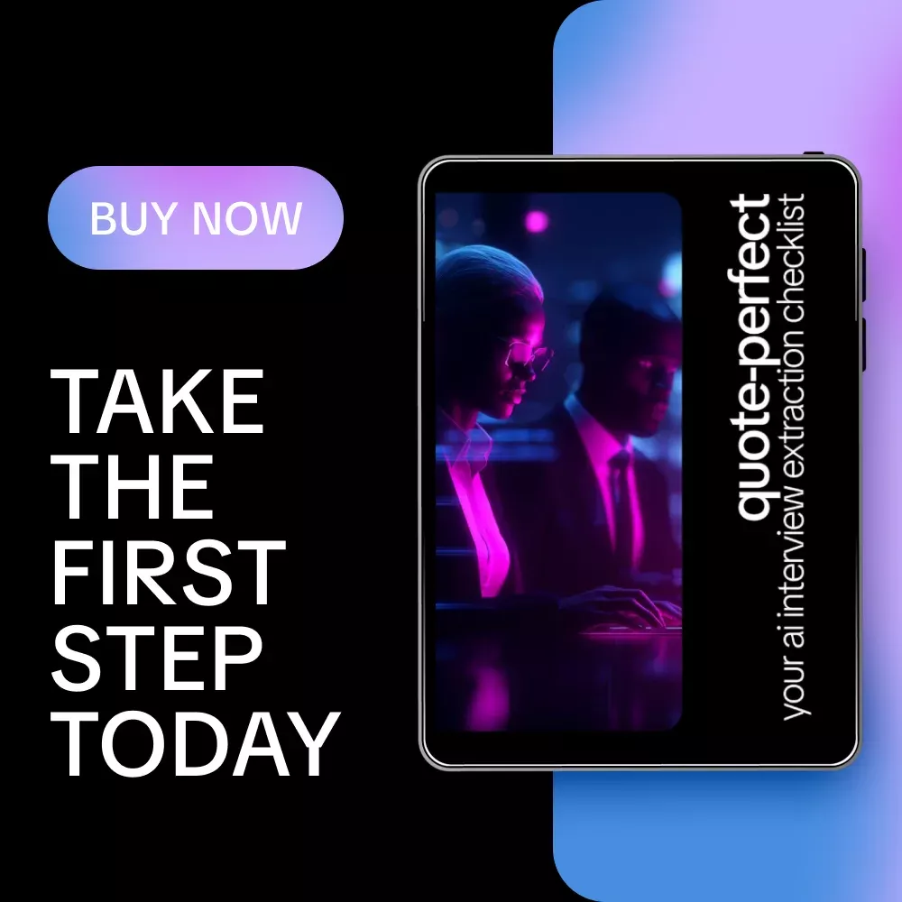 Stop letting great quotes slip away. Download Quote-Perfect: Your AI Interview Extraction Checklist today and start turning every interview into a ready-to-use source of powerful, polished quotes.