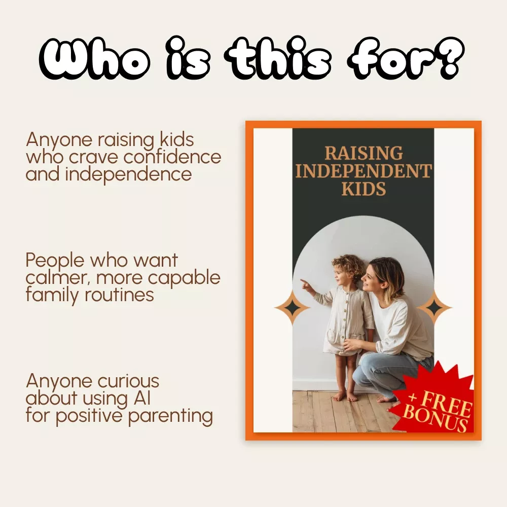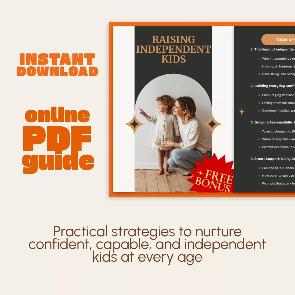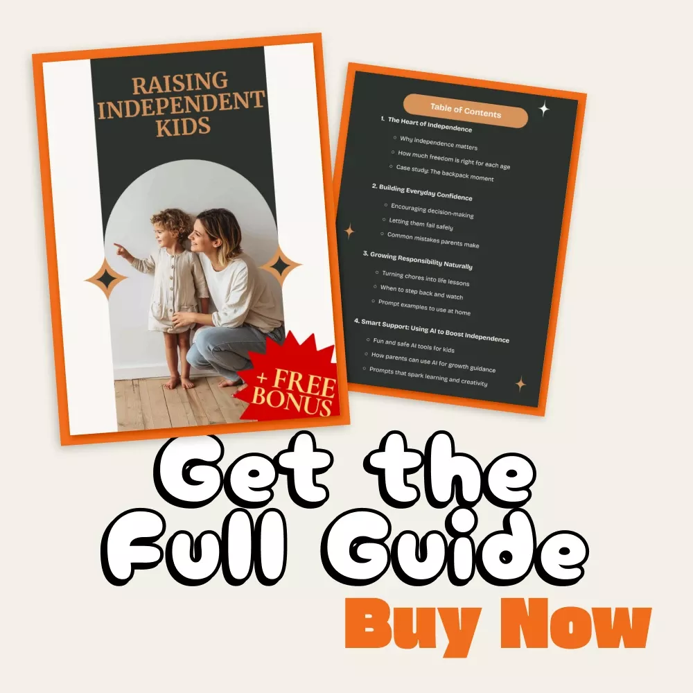 Unlock the secrets to nurturing confident, capable children with Raising Independent Kids—a beautifully designed digital guide that helps parents learn how to support your child’s independence with practical, age-appropriate strategies. Whether you’re guiding a curious kindergartner or mentoring a growing teen, this resource provides clear steps, relatable examples, and even AI-powered tools to help your child develop independence naturally. Perfect for parents who want to raise self-reliant, thoughtful kids without the stress or guesswork.