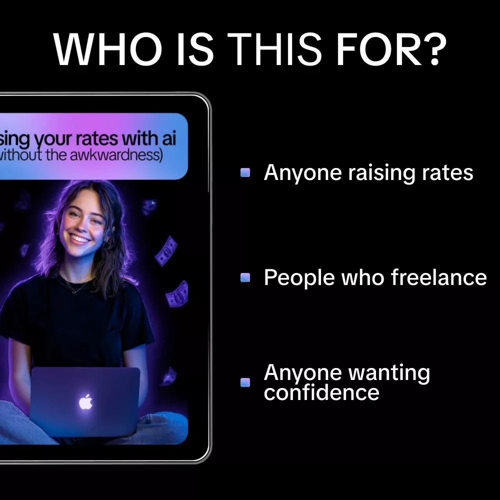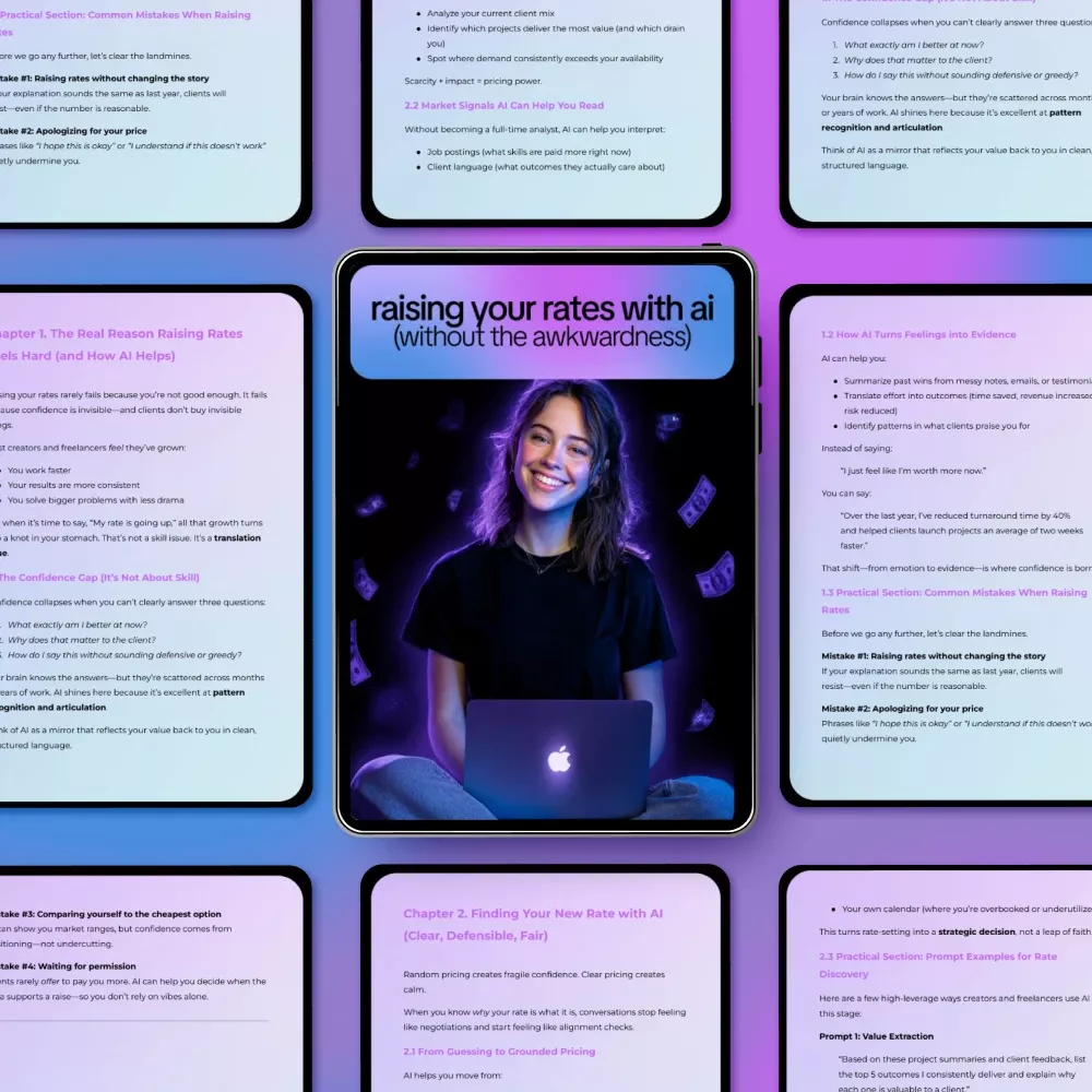 - The Real Reason Raising Rates Feels Hard (and How AI Helps) – Understand the confidence gap, turn feelings into evidence, and learn the most common mistakes freelancers make when increasing prices.