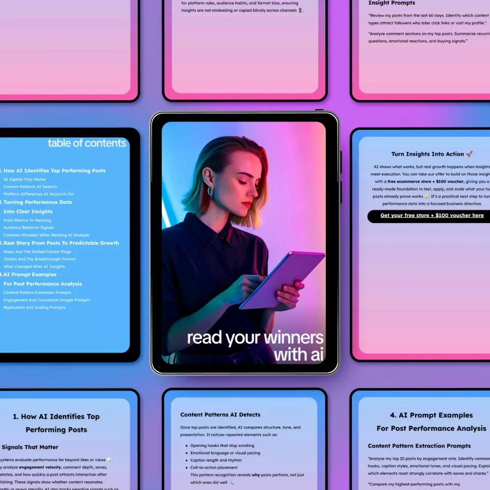 This guide is perfect for content creators, social media managers, digital marketers, and small business owners who want to make data-driven decisions and maximize the reach and impact of their content. Unlike other generic tips or checklists, Read Your Winners With AI combines actionable strategies, real-life examples, and ai that analyzes your top performing posts so you can confidently scale your content efforts.