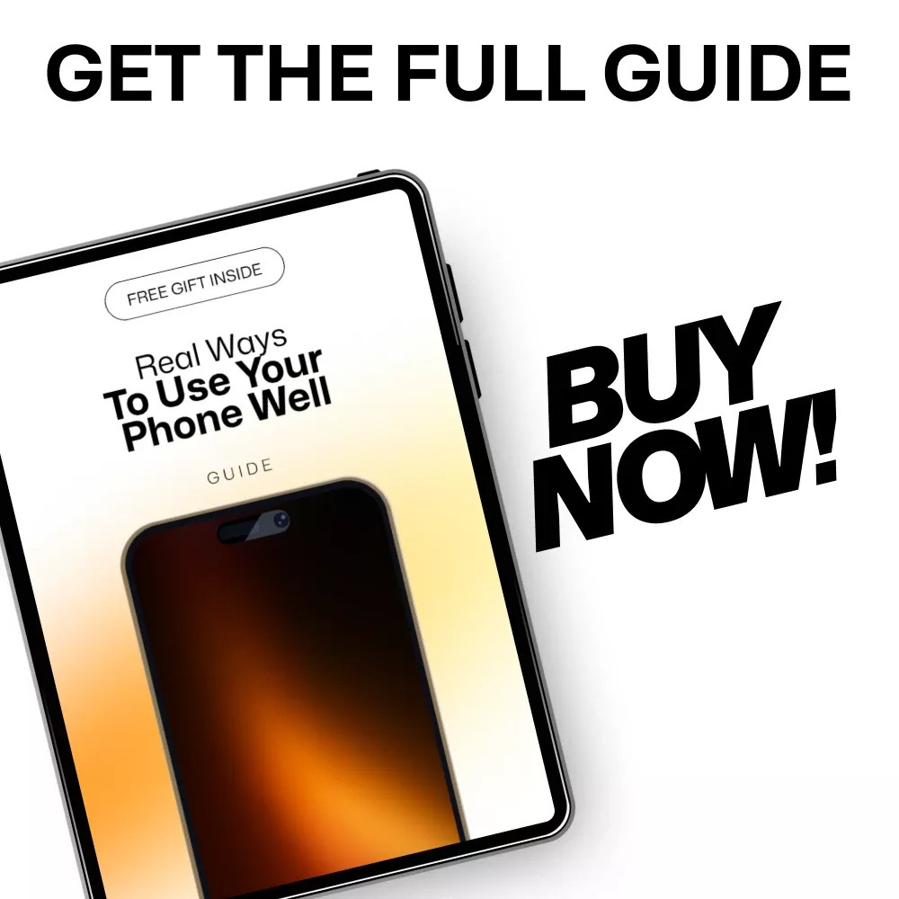 Are you tired of feeling overwhelmed by your phone? Whether it’s endless notifications, mindless scrolling, or difficulty balancing work and personal life, our Real Ways to Use Your Phone Well guide is here to help. This comprehensive eBook is packed with practical advice on how to rethink your relationship with your device, boost your productivity, and improve your overall well-being. Plus, you’ll discover how to use AI tools to streamline your day and foster personal growth. Start using your phone in a way that works for you—not against you!