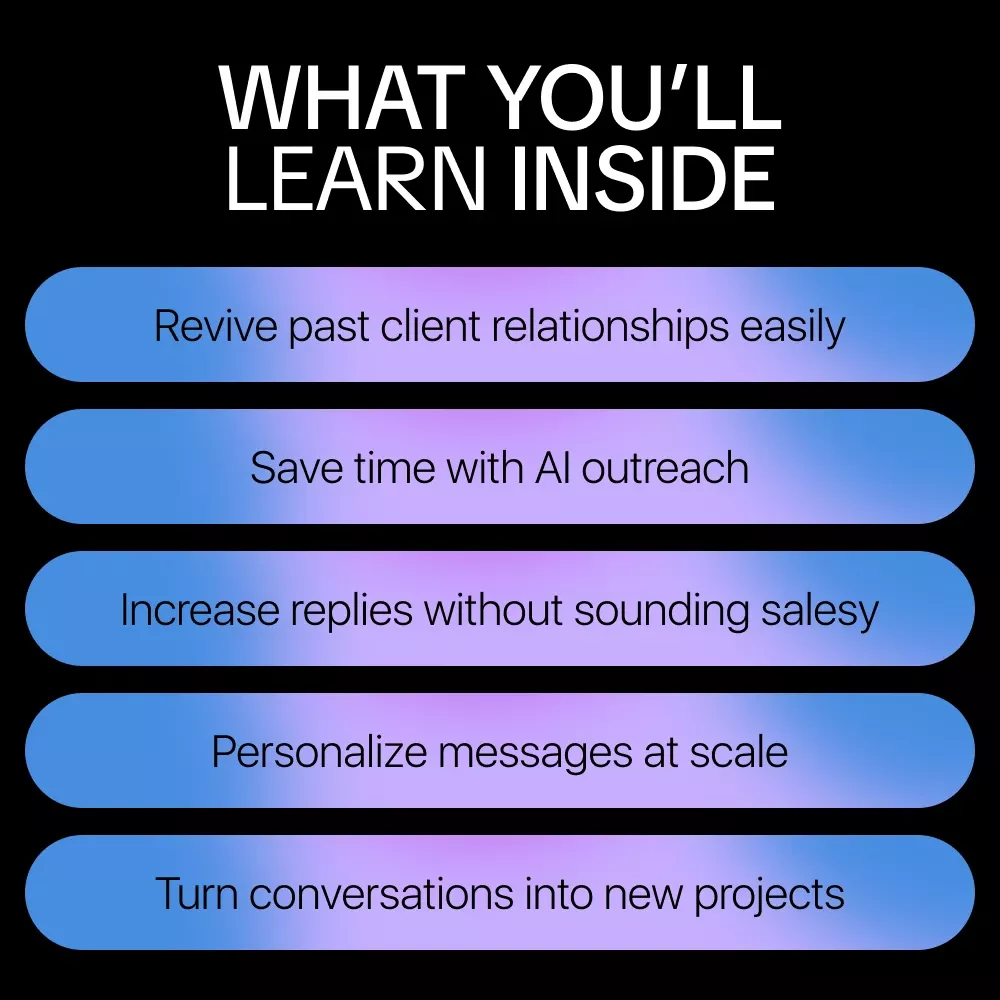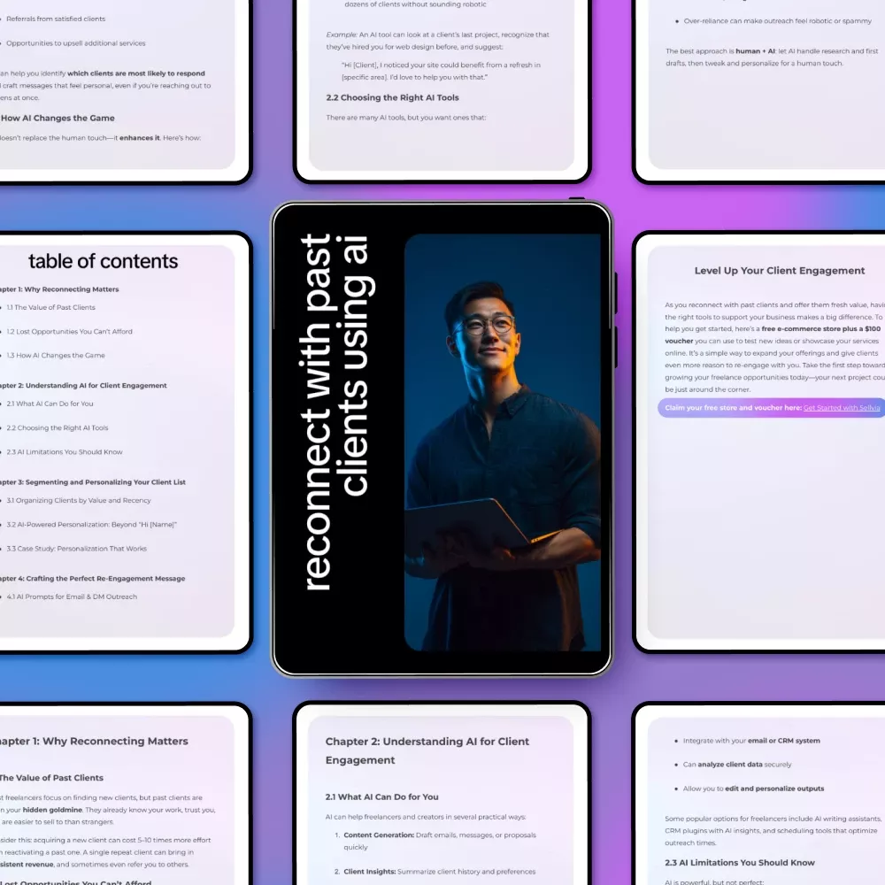 If you have past clients who loved working with you but have gone quiet, this ebook shows you how to reconnect in a smart, modern, and authentic way. Reconnect with Past Clients Using AI is a practical, easy-to-follow digital guide that teaches you how to use AI to restart conversations, rebuild relationships, and uncover new opportunities without sounding awkward or salesy. Instead of cold outreach, you’ll learn how to use ai to re engage past clients who already trust your work.