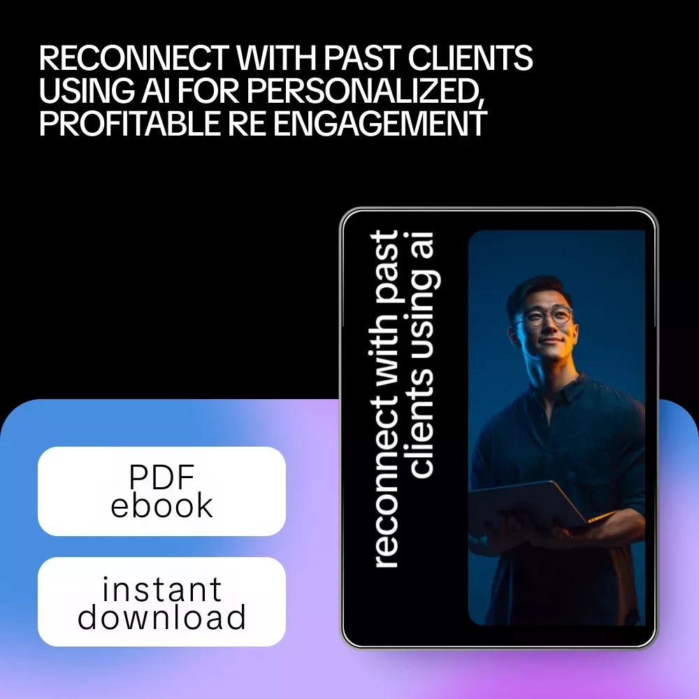 If you’re ready to stop leaving money and relationships on the table, Reconnect with Past Clients Using AI gives you everything you need to take action immediately. Download the ebook today and start using ai to re engage past clients in a way that feels genuine, confident, and effective.