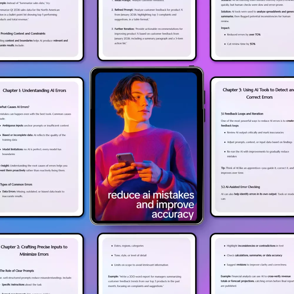 Struggling with AI outputs that just don’t hit the mark? Reduce AI Mistakes and Improve Accuracy is your ultimate digital guide for understanding why AI errors happen and how to fix them. Packed with practical examples, case studies, and actionable tips, this guide shows you exactly how to reduce AI error rates and get reliable, consistent results every time. Whether you’re a developer, business owner, or AI enthusiast, this guide will transform the way you interact with AI tools, saving you time, frustration, and costly mistakes.