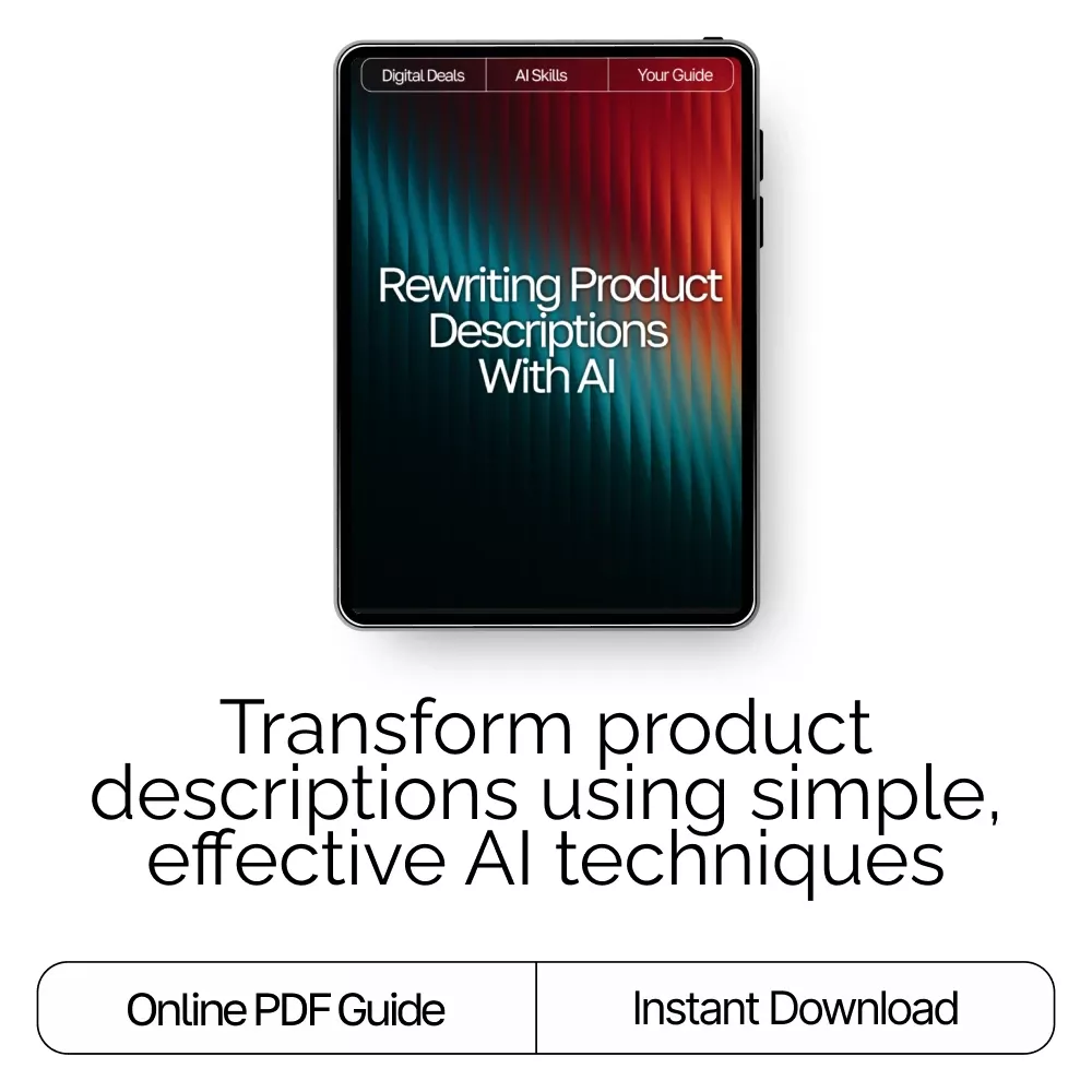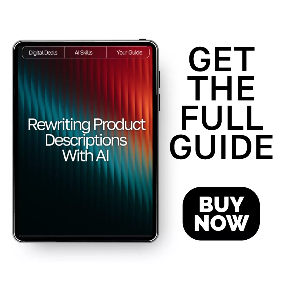 Download your copy of Rewriting Product Descriptions with AI today and start rewriting with confidence. Your next best-selling description begins here!