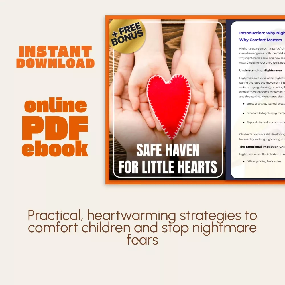 “Safe Haven for Little Hearts” is a nurturing and research-based ebook designed to help parents and caregivers understand, comfort, and guide children through the unsettling experience of nightmares. Whether you’re a first-time parent or seasoned caregiver, this comprehensive guide provides calm, compassion, and confidence for those tender moments after your child wakes from a bad dream. If you’ve ever wondered how to comfort child after waking from nightmare, this book offers the reassurance and tools you need to create a peaceful bedtime environment.