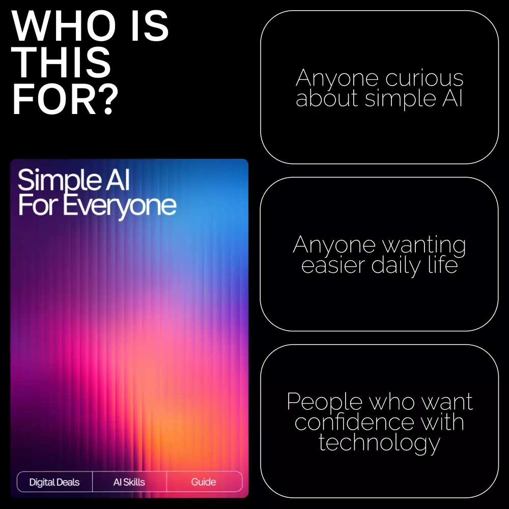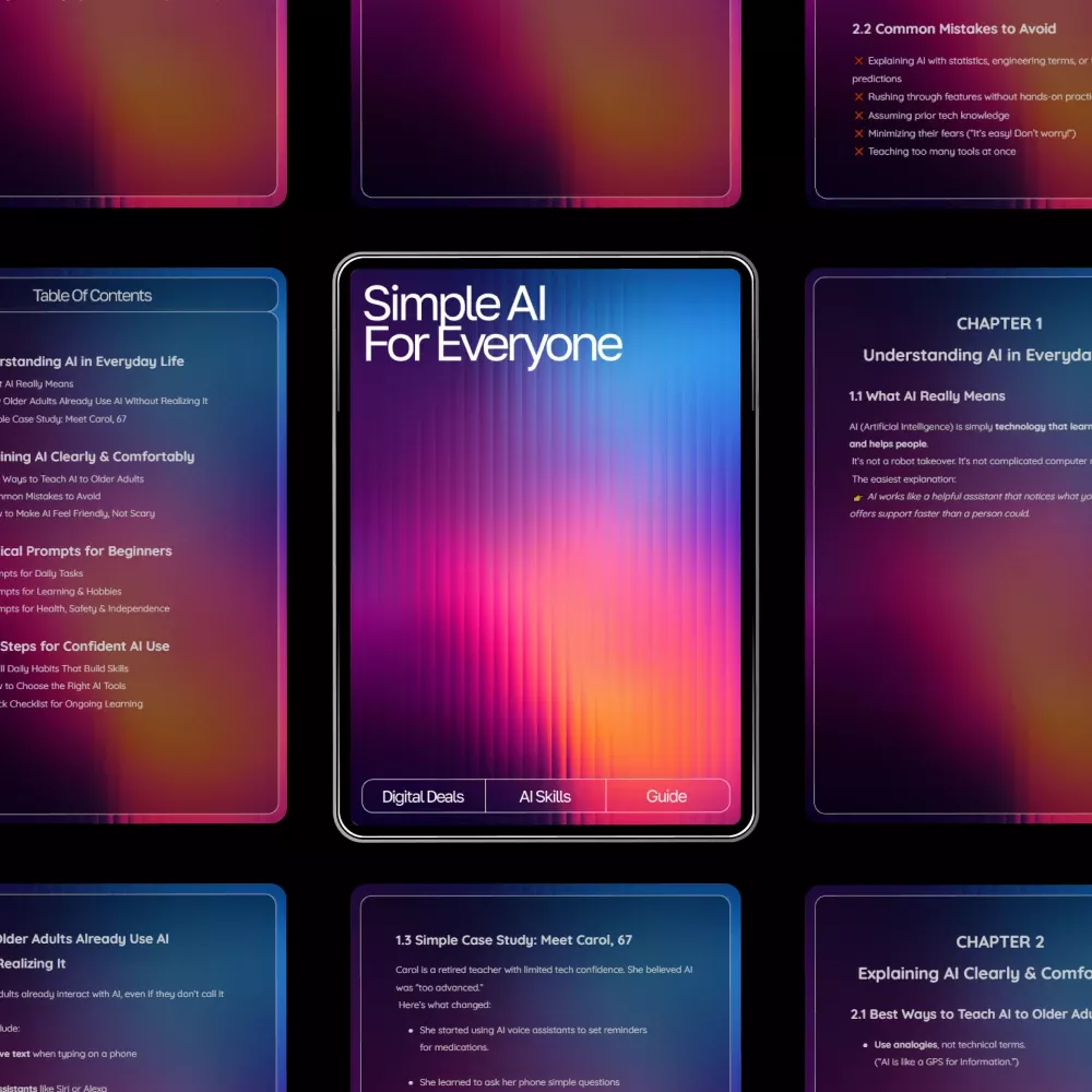 Help older adults feel confident and empowered with technology through **Simple AI for Everyone**, a warm, beginner-friendly digital guide designed to make complex ideas easy to understand. Whether you’re a caregiver, instructor, or family member, this resource gives you clear language, relatable examples, and practical steps for teaching artificial intelligence in a way that feels safe, familiar, and unintimidating. This guide naturally incorporates how to explain ai basics to older adults, making it an ideal tool for anyone wanting to simplify modern technology for aging learners.