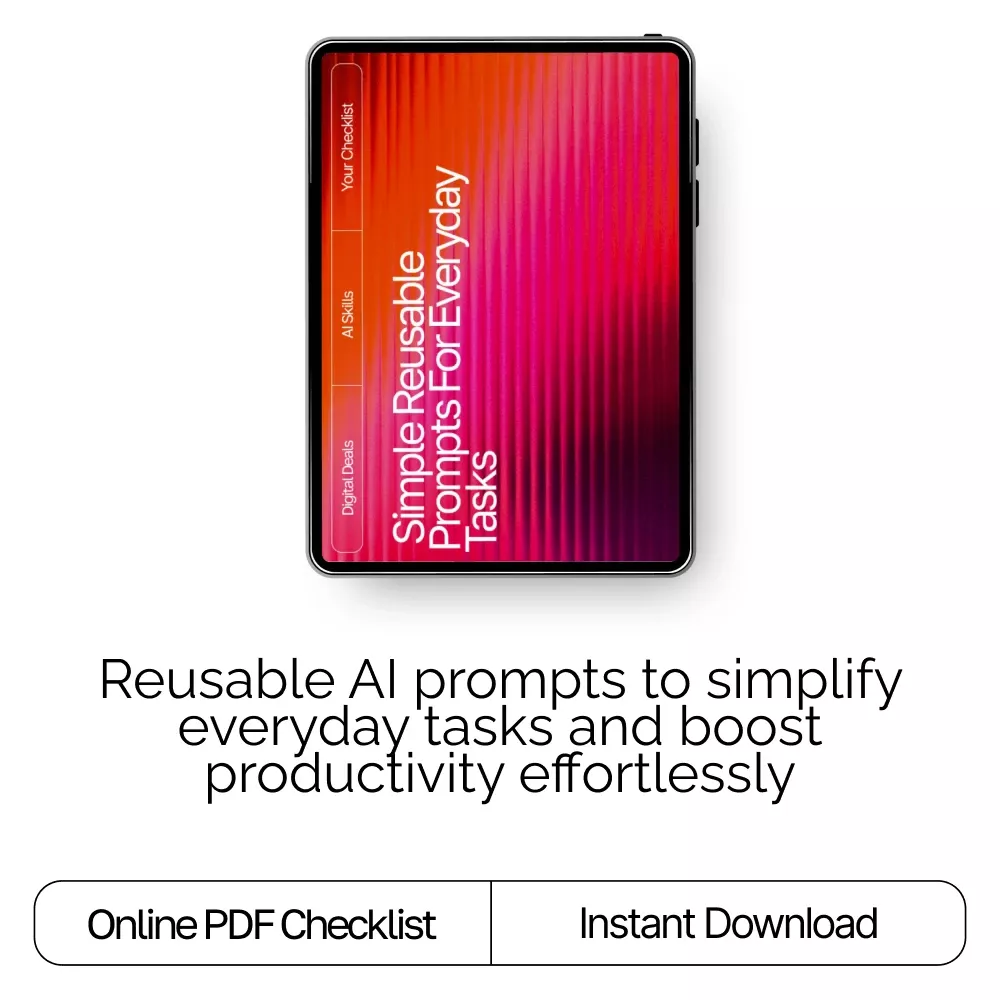 Ready to simplify your routine, spark creativity, and save hours each week? Download Simple Reusable AI Prompts for Everyday Tasks now and turn simple reusable prompts for common tasks into your new productivity superpower.
