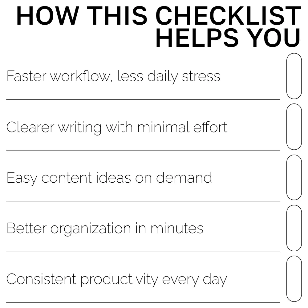 Busy professionals, creators, students, entrepreneurs, and anyone who wants to work smarter—not harder. If you love simplifying your workflow and want prompts you can reuse endlessly, this checklist is for you.