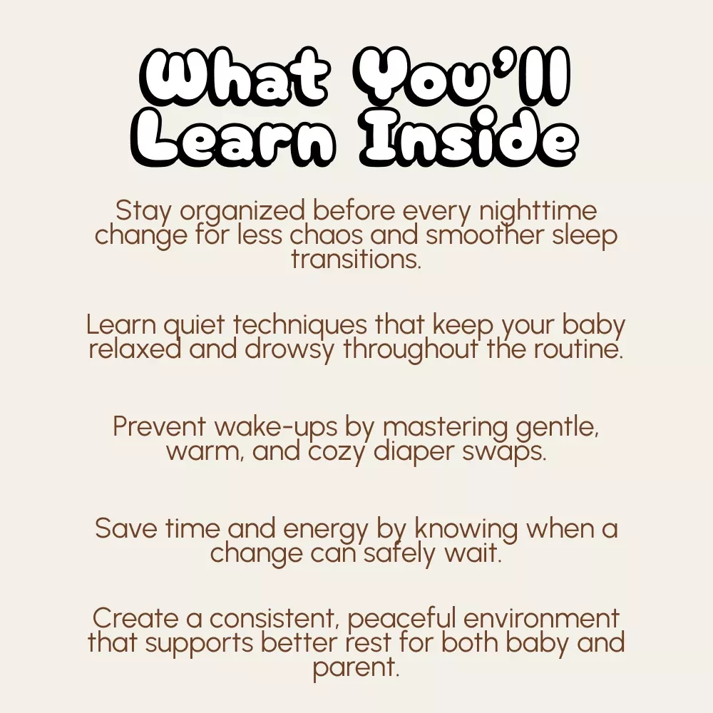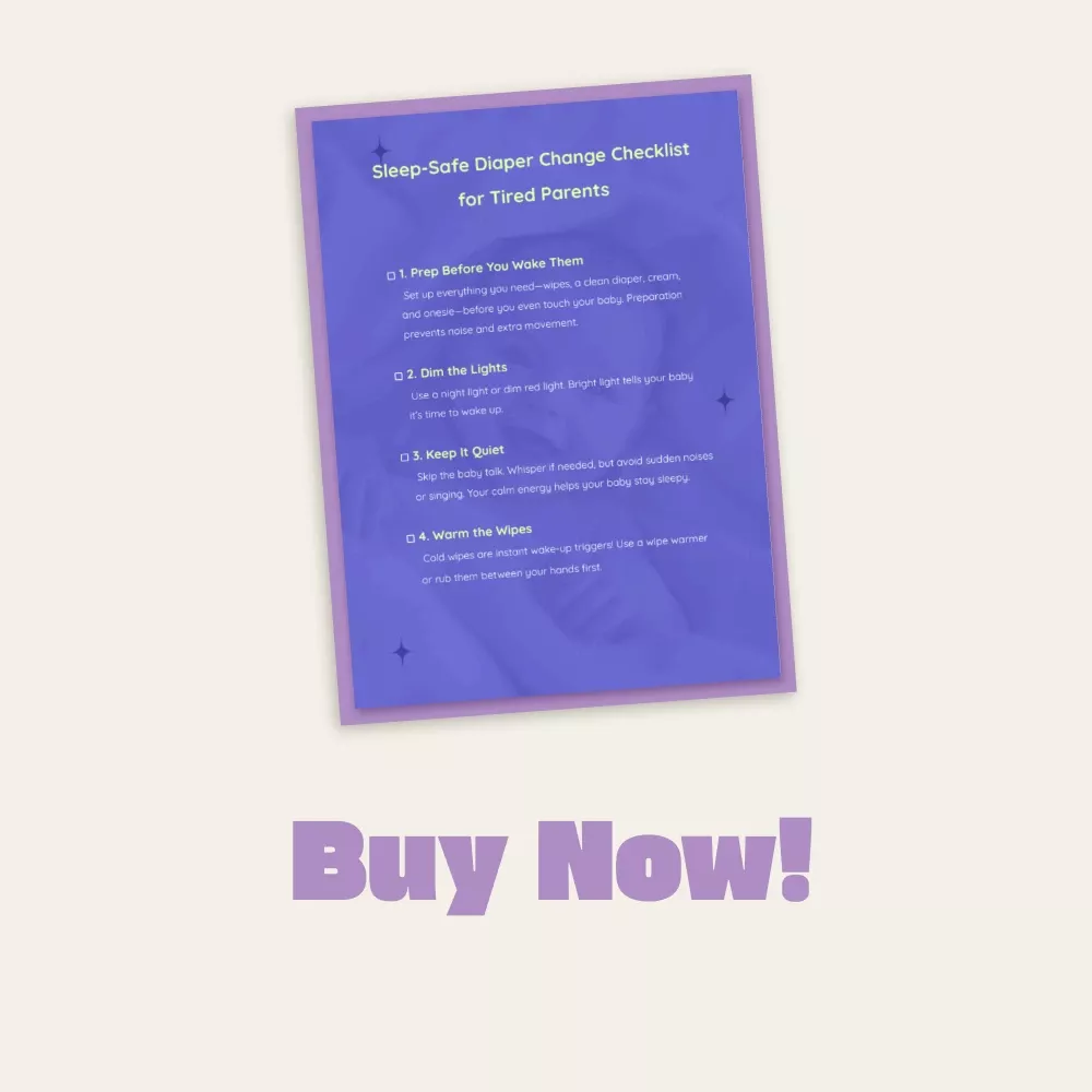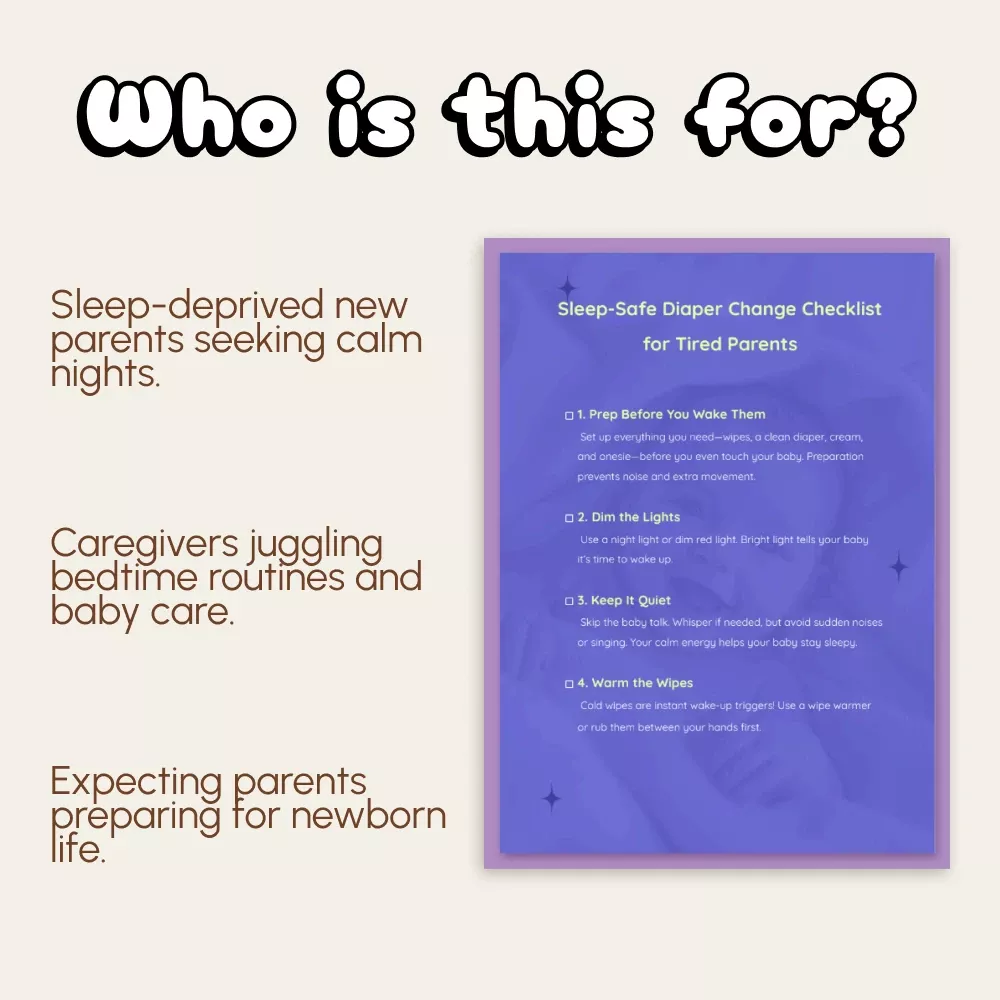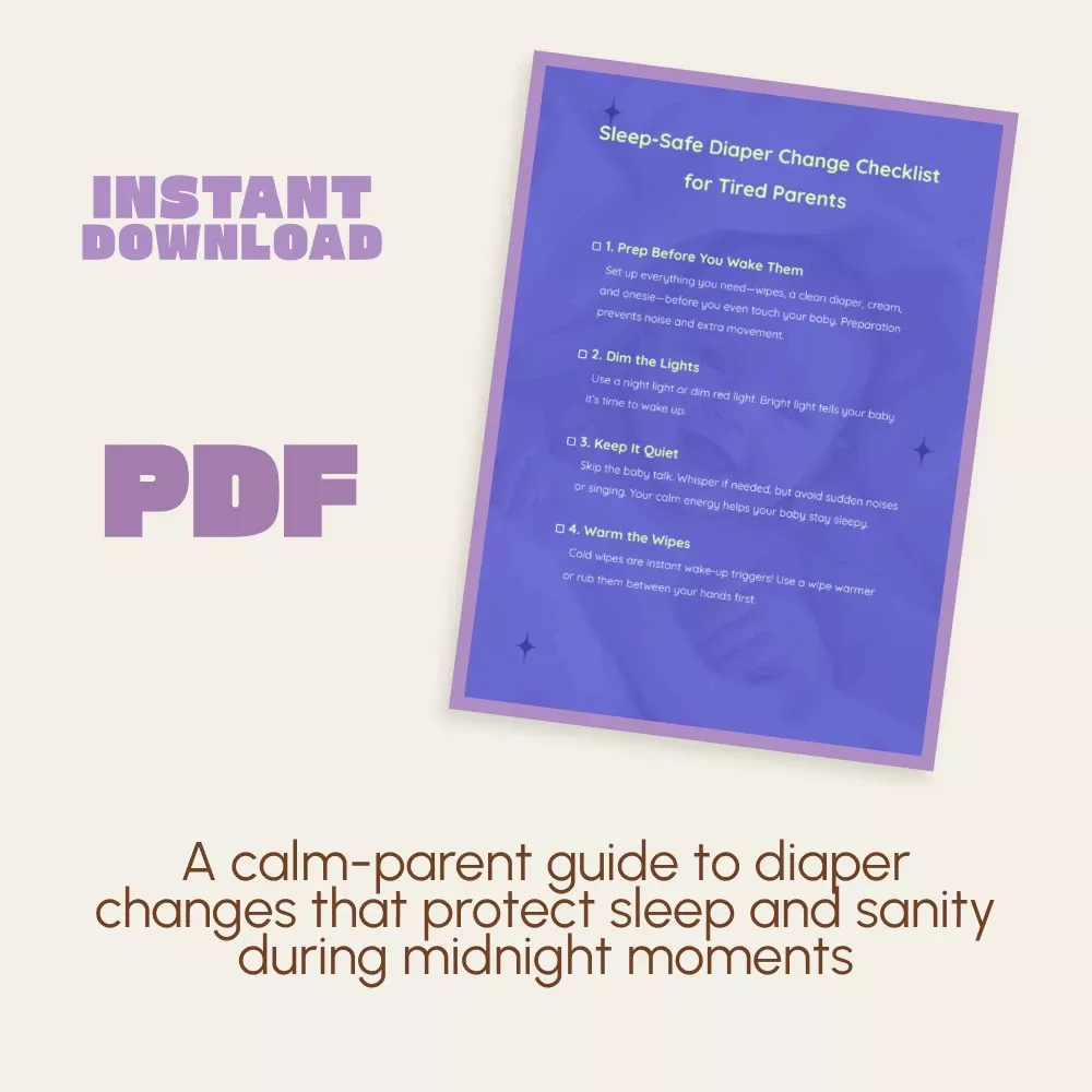 Unlike generic baby guides, this checklist focuses exclusively on how to keep baby asleep through diaper change—a small but life-changing part of your nightly routine. It’s clear, minimal, and soothing—made for parents who need clarity at 2 AM, not another overwhelming manual.