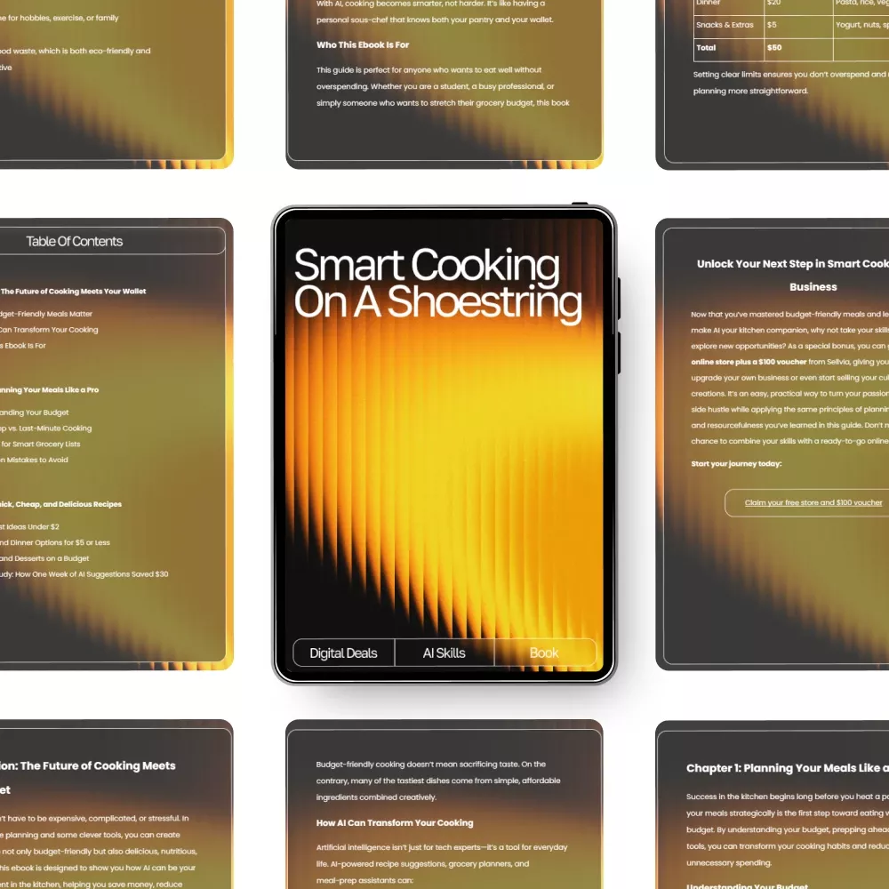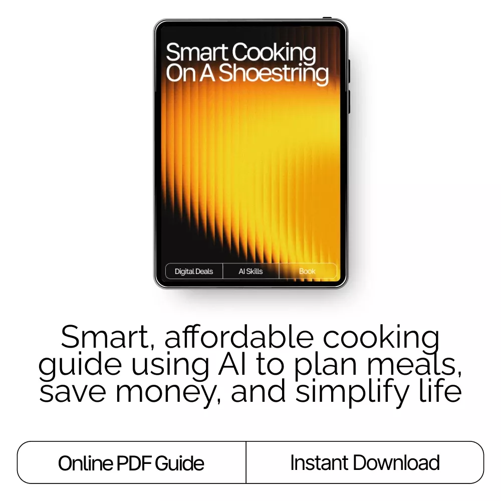 Discover how effortless and affordable great cooking can be with Smart Cooking on a Shoestring—a powerful, easy-to-use digital guide designed for anyone who wants to save money, cook faster, and eat better. This eBook blends practical kitchen wisdom with modern technology, showing you how ai suggestions for budget-friendly recipes can completely transform the way you plan meals, shop, and cook. Whether you’re feeding a family, cooking for one, or simply trying to cut down grocery costs, this guide turns your kitchen into a smarter, more budget-friendly space.