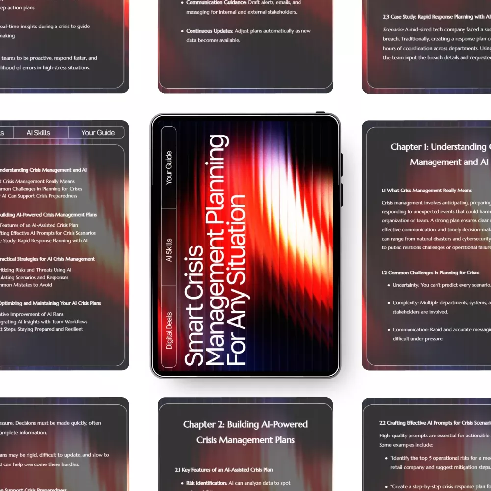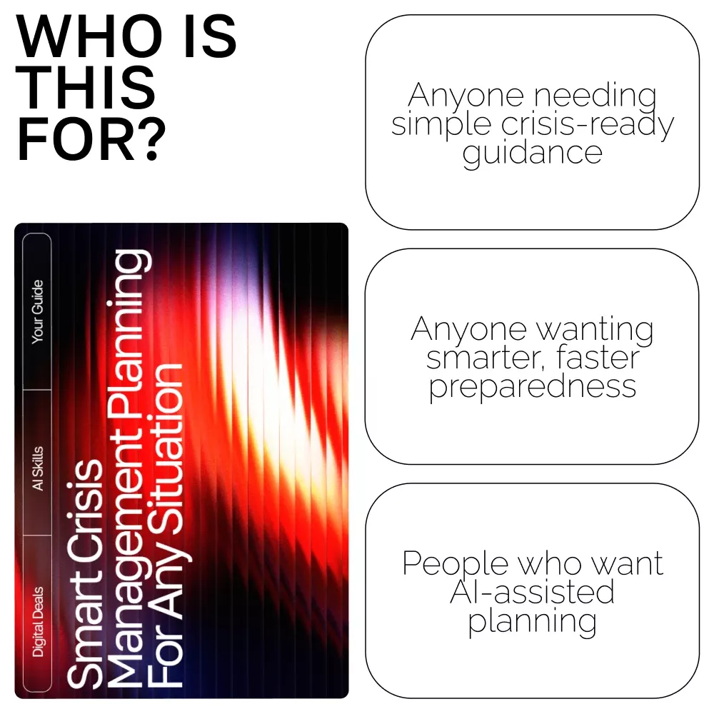 Be prepared for anything with Smart Crisis Management Planning for Any Situation—a powerful, easy-to-follow digital guide designed to help you build resilient, AI-supported crisis plans. Perfect for leaders, small business owners, educators, safety coordinators, and anyone who wants to stay ready for the unexpected, this guide shows you exactly how to use ai for crisis management plans in a practical and achievable way. Whether you’re new to crisis preparedness or looking to modernize outdated strategies, this resource simplifies the process and empowers you with clear, actionable steps.