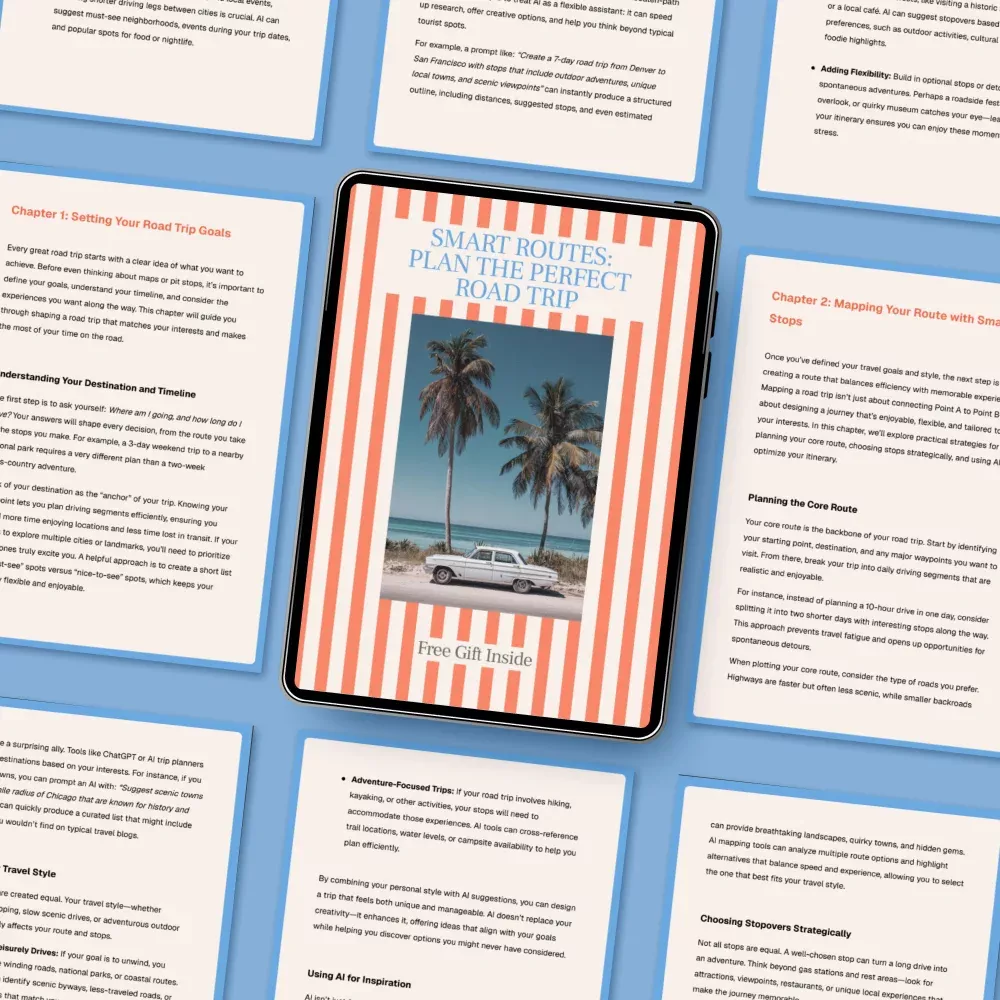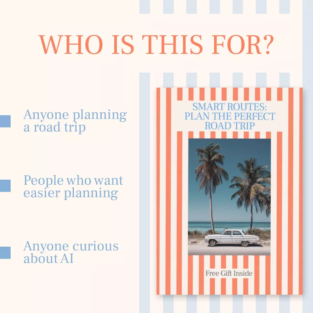 Unlike other digital road trip guides, Smart Routes combines practical planning with AI-powered insights, helping you make smarter decisions about where to go and when. With clear, human-friendly instructions and real-world case studies, it’s more than a checklist—it’s your personal roadmap to a stress-free, unforgettable adventure.