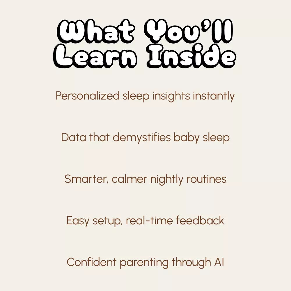 Unlike generic sleep guides, Smart Sleep combines expert insights, data-backed examples, and real parent experiences with clear steps on how to use AI to monitor baby’s sleep patterns. It’s designed to make AI accessible—even if you’re not tech-minded—so you can finally feel empowered, informed, and rested.