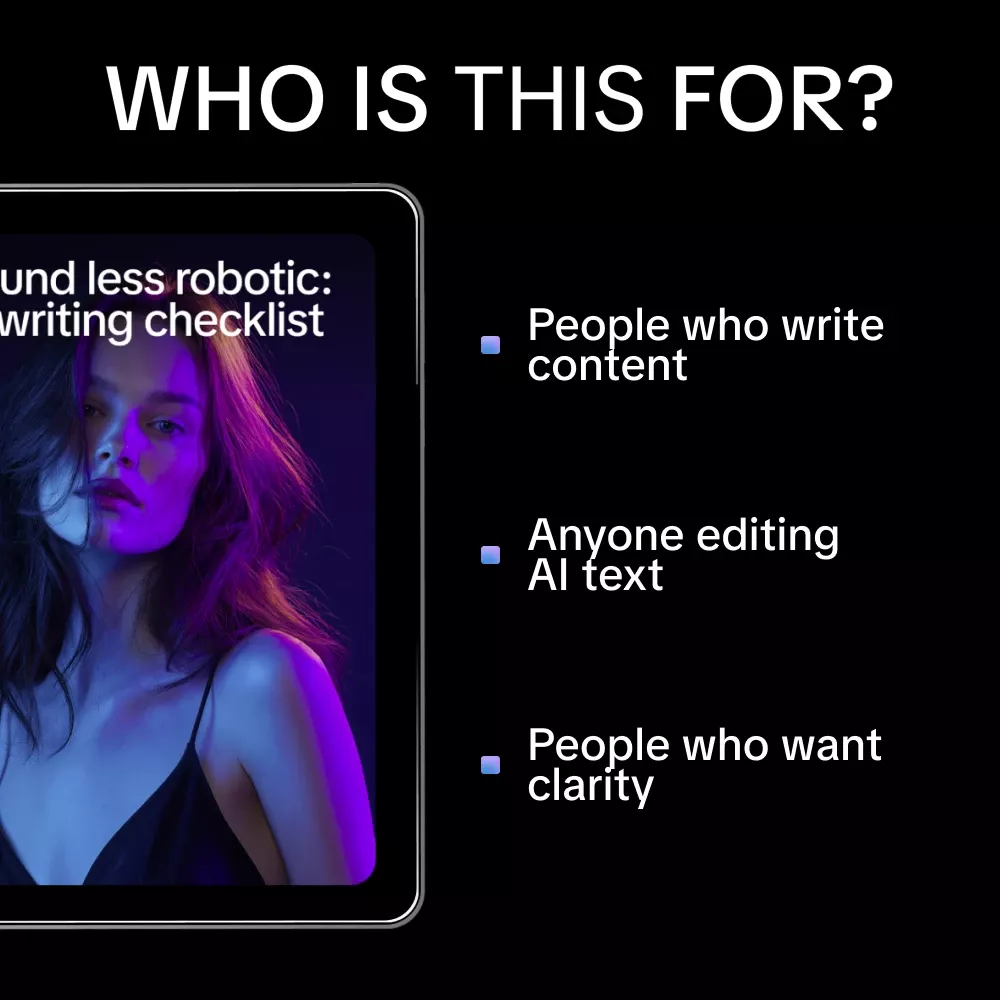 Download Sound Less Robotic: AI Writing Checklist today and turn stiff AI output into clear, natural, engaging content your readers actually enjoy. Add it to your toolkit and make every piece of writing sound like you.