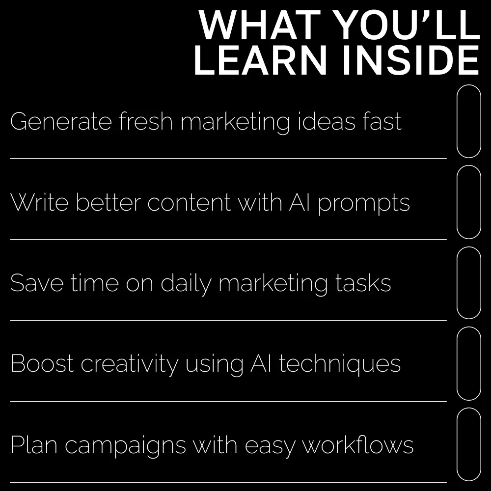 Unlike generic prompt lists, this guide explains the why behind every prompt. You’ll learn how to think like an AI partner, craft smarter instructions, and apply strategies backed by real-world examples. It’s not just a list—it’s a complete learning tool that grows with your marketing skills.