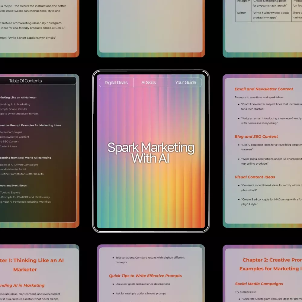 Unlock your most creative campaigns with Spark Marketing with AI, a powerful digital guide designed to help you think, create, and strategize like an AI-savvy marketer. Whether you’re building social posts, writing emails, planning blog content, or brainstorming visuals, this guide shows you exactly how to use ai prompts for marketing ideas to simplify your workflow and elevate your results. Inside, you’ll find practical explanations, real examples, and ready-to-use prompts that help you generate marketing ideas faster and with more clarity.