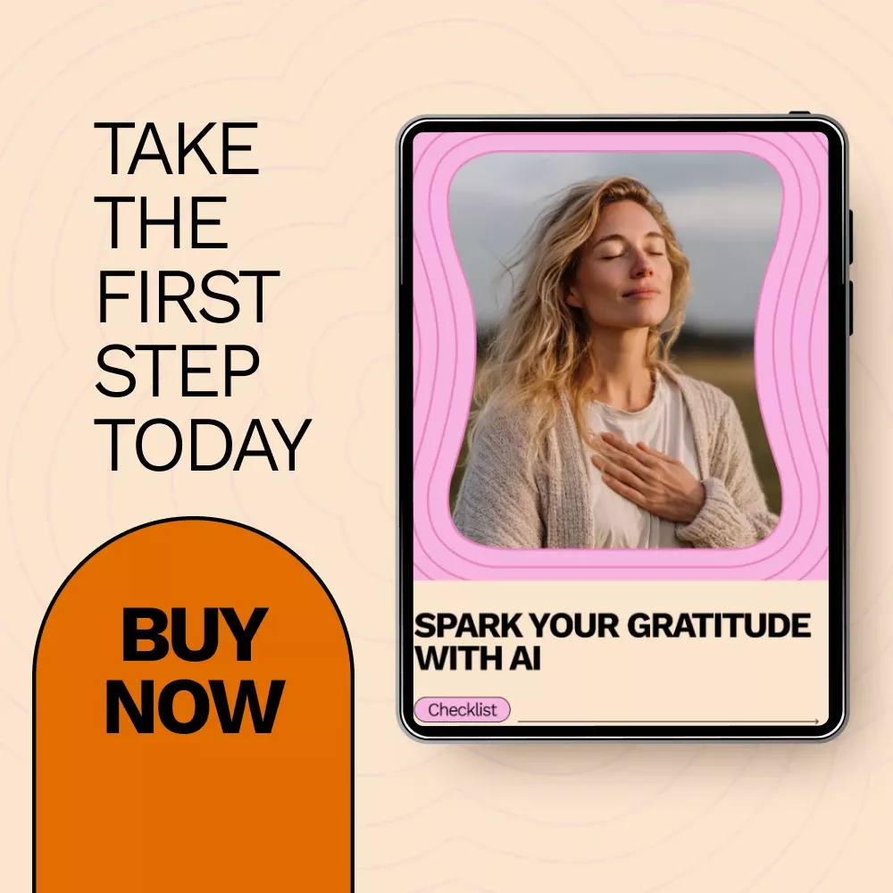 Introducing Spark Your Gratitude with AI, a downloadable checklist designed to help you create personalized gratitude lists with the power of AI. Whether you’re looking to appreciate life’s big milestones or those quiet, everyday moments, this guide is your go-to tool for cultivating a gratitude practice that’s both reflective and inspiring. Using AI for generating gratitude lists, you’ll be able to generate thoughtful, unique lists that go beyond the typical “thankful for family” notes. Ready to spark your gratitude in a whole new way?
