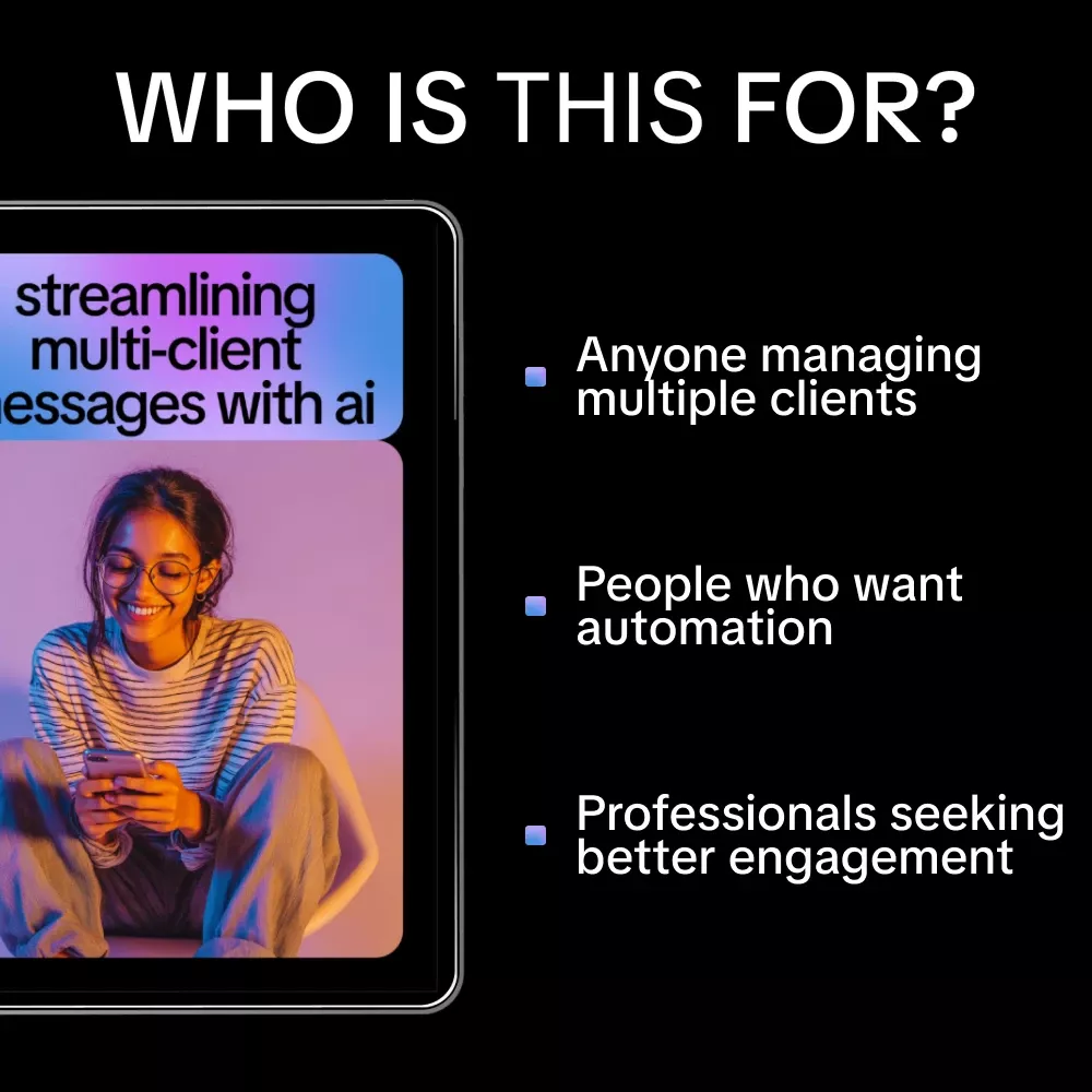 This eBook is perfect for freelancers, marketing professionals, agencies, or anyone who manages multiple client accounts and wants to streamline communication. If you’re looking to simplify your workflow, automate repetitive tasks, and still maintain a personal connection with clients, this guide is designed for you.