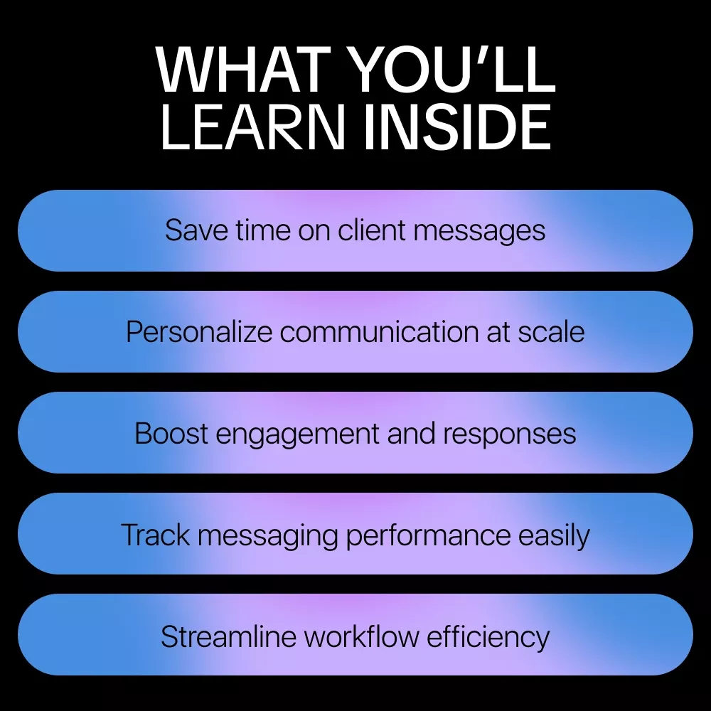 - Chapter 3: Personalizing Messages at Scale – Master client segmentation, AI tools for tailored messaging, and tips to avoid common mistakes.