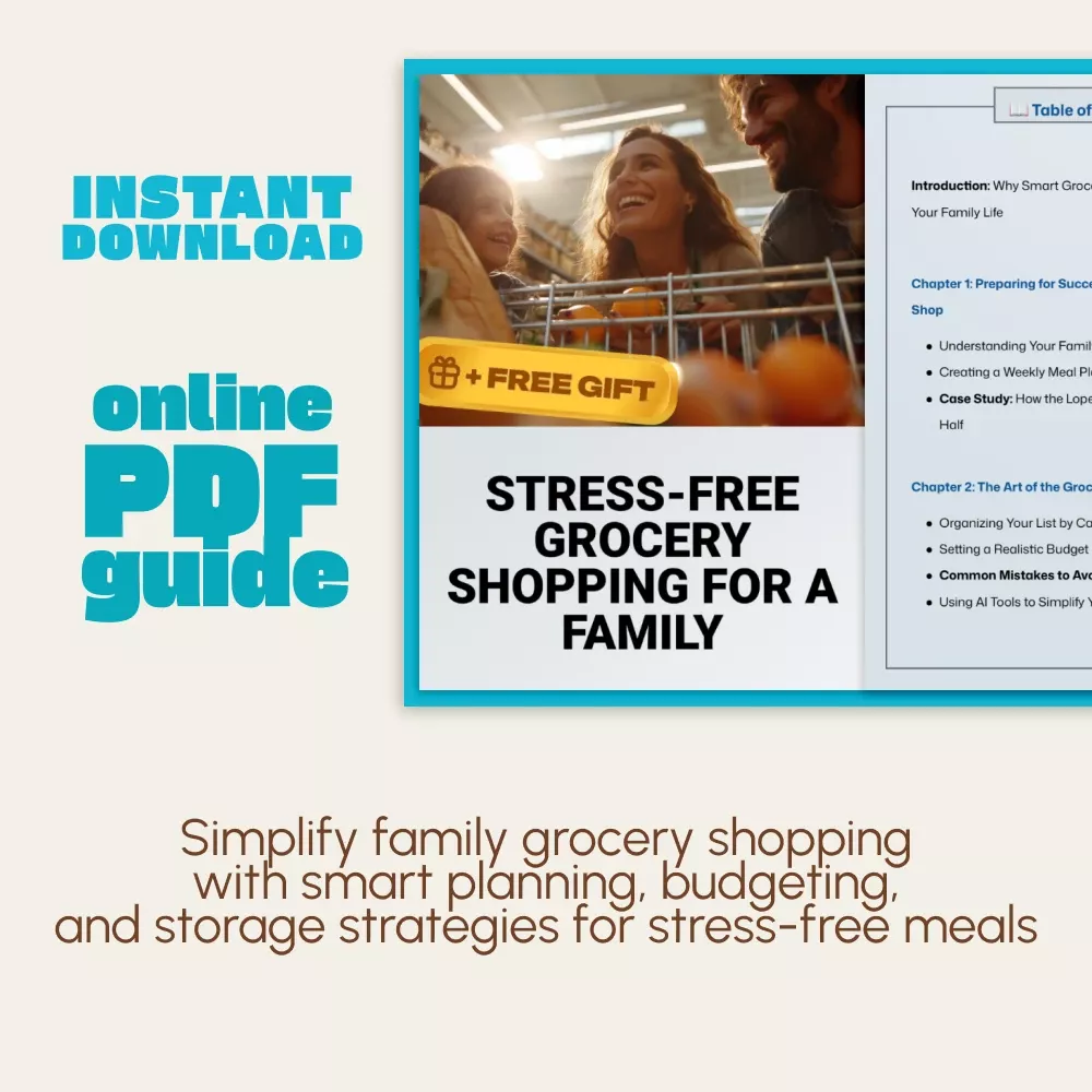 Transform your weekly food runs into a calm, organized routine with Stress-Free Grocery Shopping for a Family — a practical, easy-to-follow digital guide designed for busy parents who want to save time, reduce waste, and simplify mealtime decisions. Whether you’re juggling work, school, and family schedules, this guide helps you master how to manage grocery shopping for a family without stress or chaos. From smart meal planning to AI-powered shopping tips, you’ll discover how small adjustments can make a big difference in your family’s lifestyle and budget.