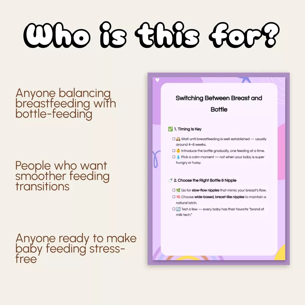 Feel calm, capable, and connected as you nourish your baby both ways. Download the Switching Between Breast and Bottle Checklist now and take the stress out of balancing breastfeeding and bottle-feeding. Your journey to a confident, happy feeding routine begins here — one gentle step at a time.