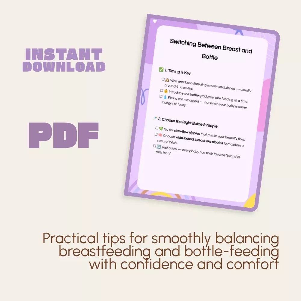 Balancing breastfeeding with bottle-feeding doesn’t have to feel like a guessing game. The Switching Between Breast and Bottle Checklist is your step-by-step digital companion for mastering both worlds with ease and confidence. Designed for new moms who want to transition smoothly — whether for flexibility, comfort, or returning to work — this beautifully organized, easy-to-follow guide helps you understand exactly how to switch between breast and bottle without stress or confusion.