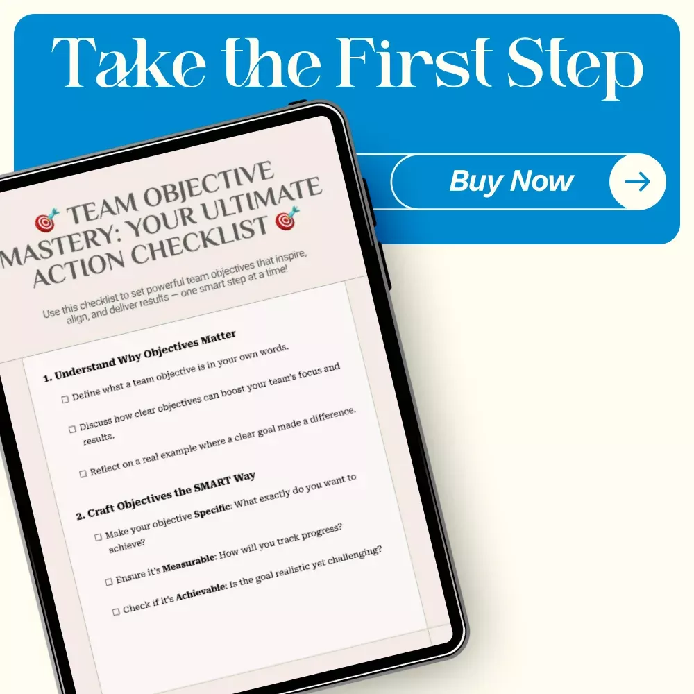 Don’t let vague or untracked objectives hold your team back. Download Team Objective Mastery: Your Ultimate Action Checklist today and start setting objectives that inspire focus, engagement, and results. Your team’s success starts here.