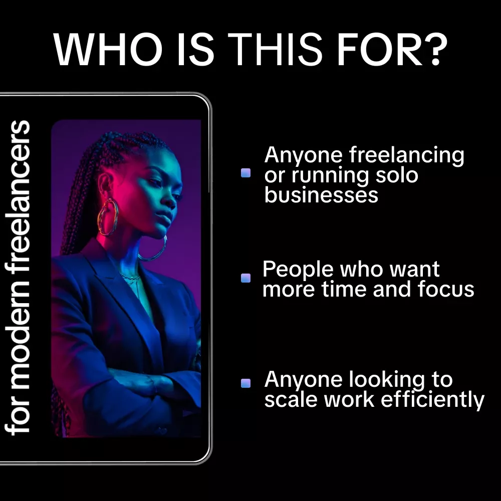 - Gain a clear roadmap for scaling your freelance business with systems, not hustle.