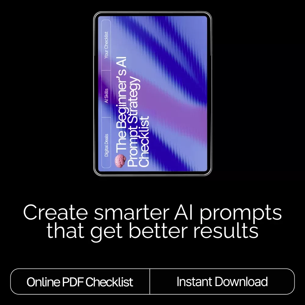 Download “The Beginner’s AI Prompt Strategy Checklist” today and start crafting AI prompts that deliver smarter, clearer, and more creative results every time. Get confident, save time, and let AI finally work the way you want it to.