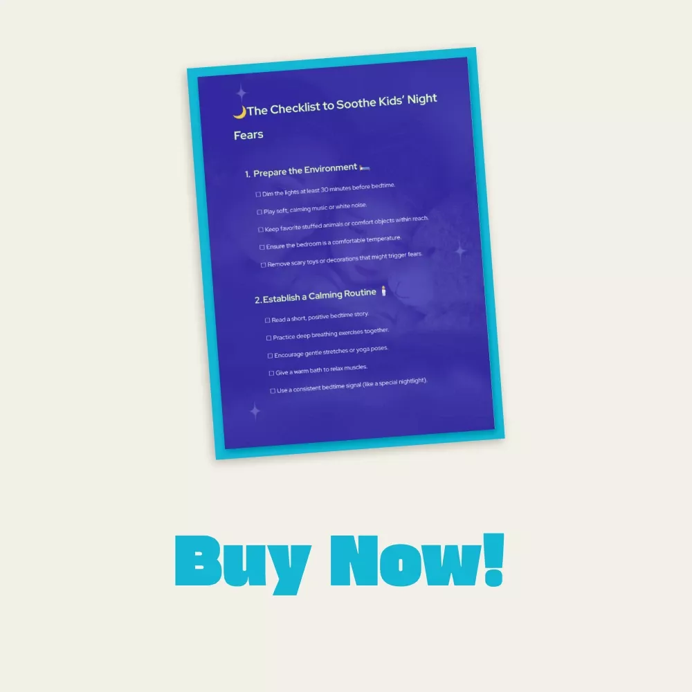 Unlike generic parenting guides, The Checklist to Soothe Kids’ Night Fears blends practical, evidence-based methods with creative emotional support — including imaginative “mind games” and modern AI-assisted bedtime tools. It’s crafted to fit into any family’s nightly routine with warmth and flexibility, helping your child feel safe and seen.