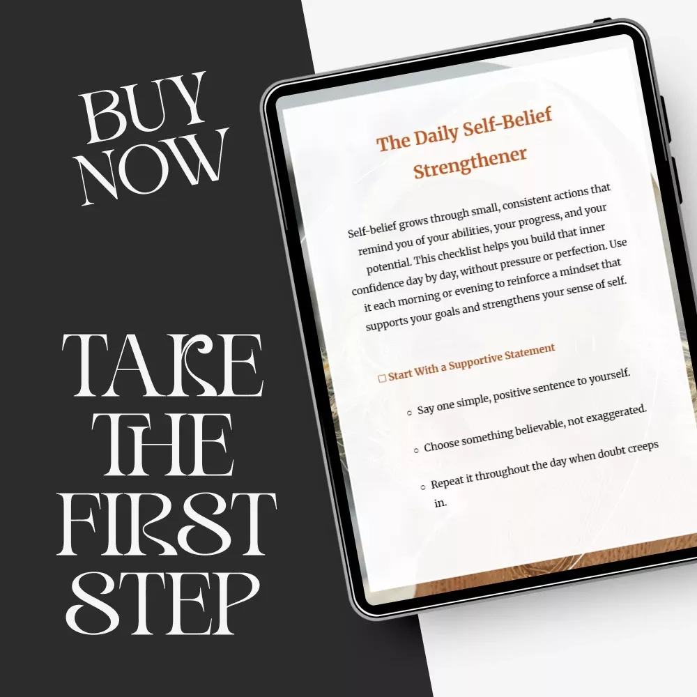 Your belief in yourself grows through action. Download The Daily Self-Belief Strengthener and discover how to strengthen self-belief every day through kind, practical steps that turn confidence into a daily habit.