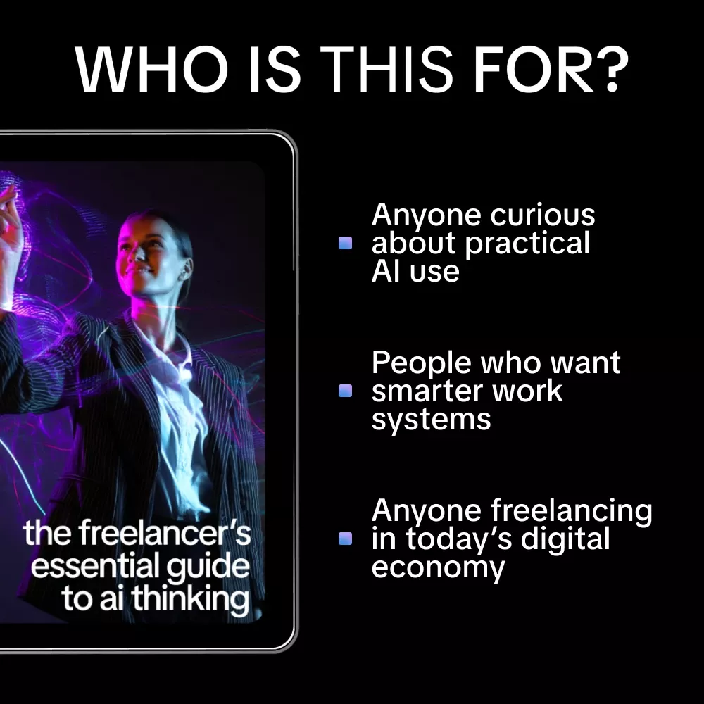 The Freelancer’s Essential Guide to AI Thinking is a digital download you can start using right away. If you want less confusion, more confidence, and practical results from AI, add this eBook to your toolkit today and start building smarter freelance systems.