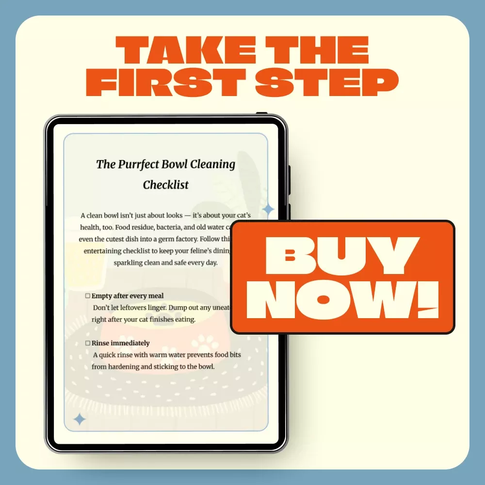 Make every meal a safe and sparkling experience for your cat! Download The Purrfect Bowl Cleaning Checklist today and start transforming your cleaning routine into an easy, enjoyable habit. Perfect for printing or keeping handy on your phone or tablet — because your cat deserves the very best!