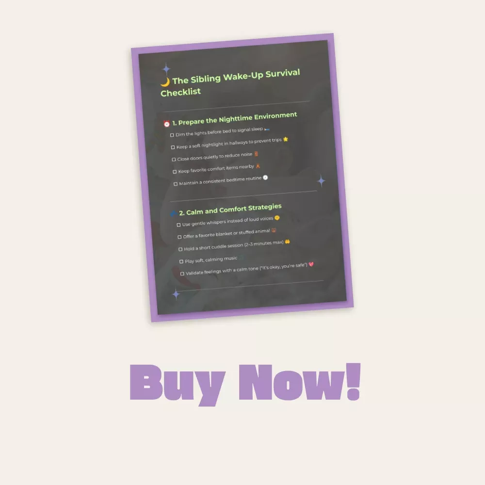 This checklist is designed for parents, caregivers, and families looking for simple solutions on how to handle siblings waking in night. It’s especially helpful for families with young children who share bedrooms or struggle with nighttime separation anxiety.