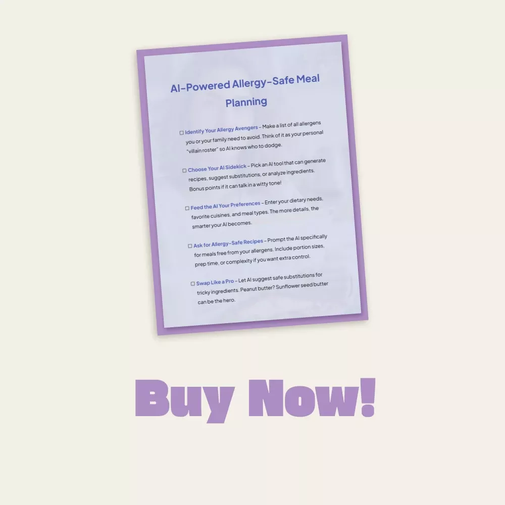 Don’t let meal planning stress you out for another day. Click “Add to Cart” now to get instant access to your AI-Powered Allergy-Safe Meal Planning Checklist. Download your copy today and transform your relationship with food!